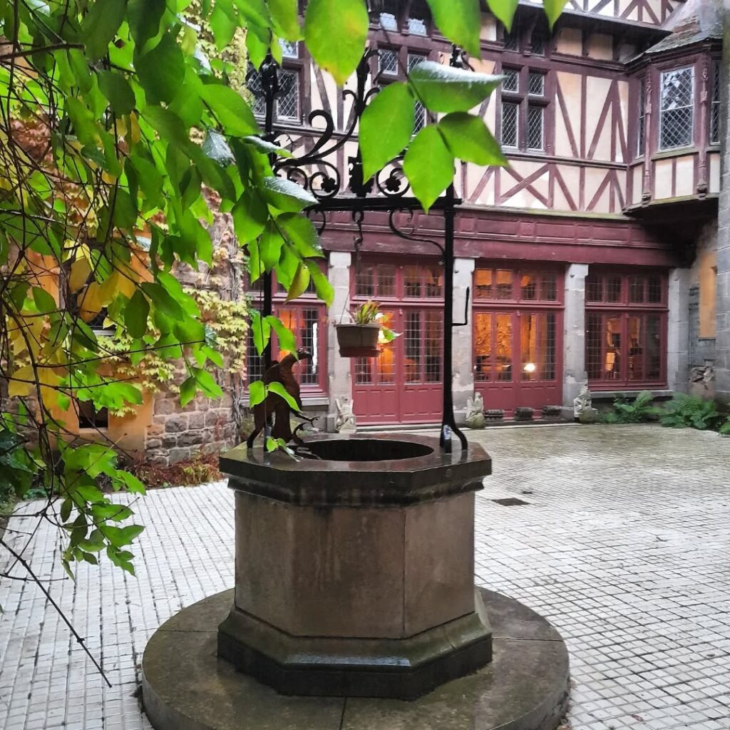 La cour intérieure, avec son puits ancien et son bâtiment à colombages, nous transporte encore plus loin dans le temps.