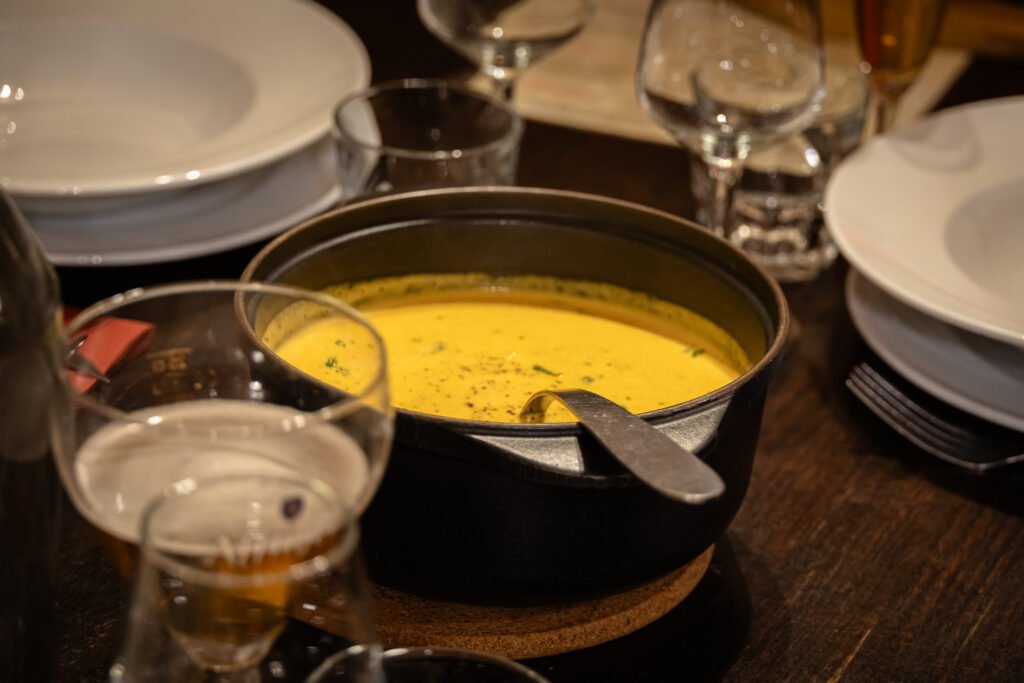 Après la visite de la brasserie Virage Sept, il était temps de faire une pause et de savourer les spécialités locales. Nous avons pris la route vers Courzieu, un charmant village niché entre forêts et collines, pour déjeuner à l’Auberge du Pastoureau — une adresse réputée dans les Monts du Lyonnais pour sa cuisine lyonnaise traditionnelle et son accueil chaleureux.