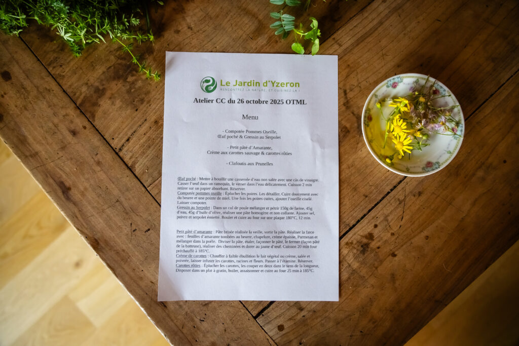 Pour clôturer notre week-end dans les Monts du Lyonnais, rien de mieux qu’un moment de partage autour de la nature et de la gastronomie locale. Nous avions rendez-vous au Jardin d’Yzeron, un lieu paisible et inspirant niché entre collines et forêts, pour participer à un atelier de cueillette et de cuisine animé par Sébastien, passionné de plantes sauvages et de cuisine durable.