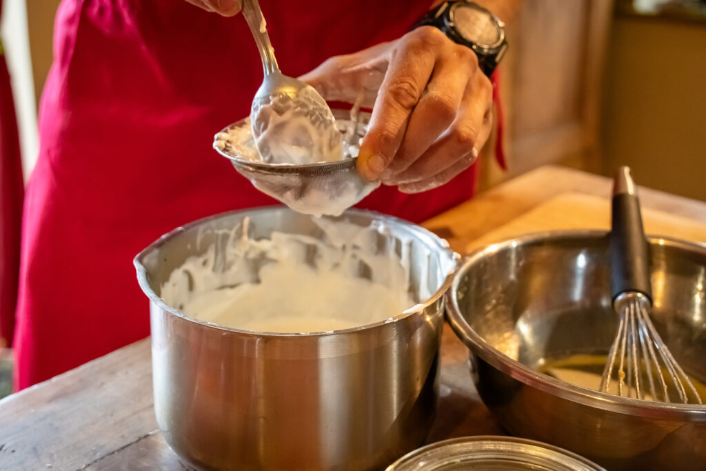 Retour en cuisine ! Nous avons enfilé nos tabliers et formé des petits groupes : à chacune sa mission. L’ambiance était incroyablement conviviale et harmonieuse : nous partagions les ustensiles, échangions des conseils, observions les préparations des autres avec curiosité et bienveillance. C’était plus qu’un atelier de cuisine : une véritable expérience humaine et collective.