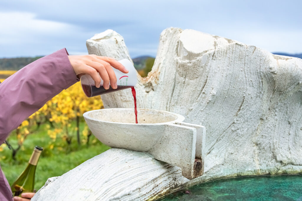 En clôture de la balade, nous avons participé à une petite cérémonie de libation, partageant quelques gouttes de Beaujolais avec la terre des vignes. Ce geste simple, symbolique et émouvant, m’a profondément touchée — comme une promesse de respect et d’humilité envers la nature.