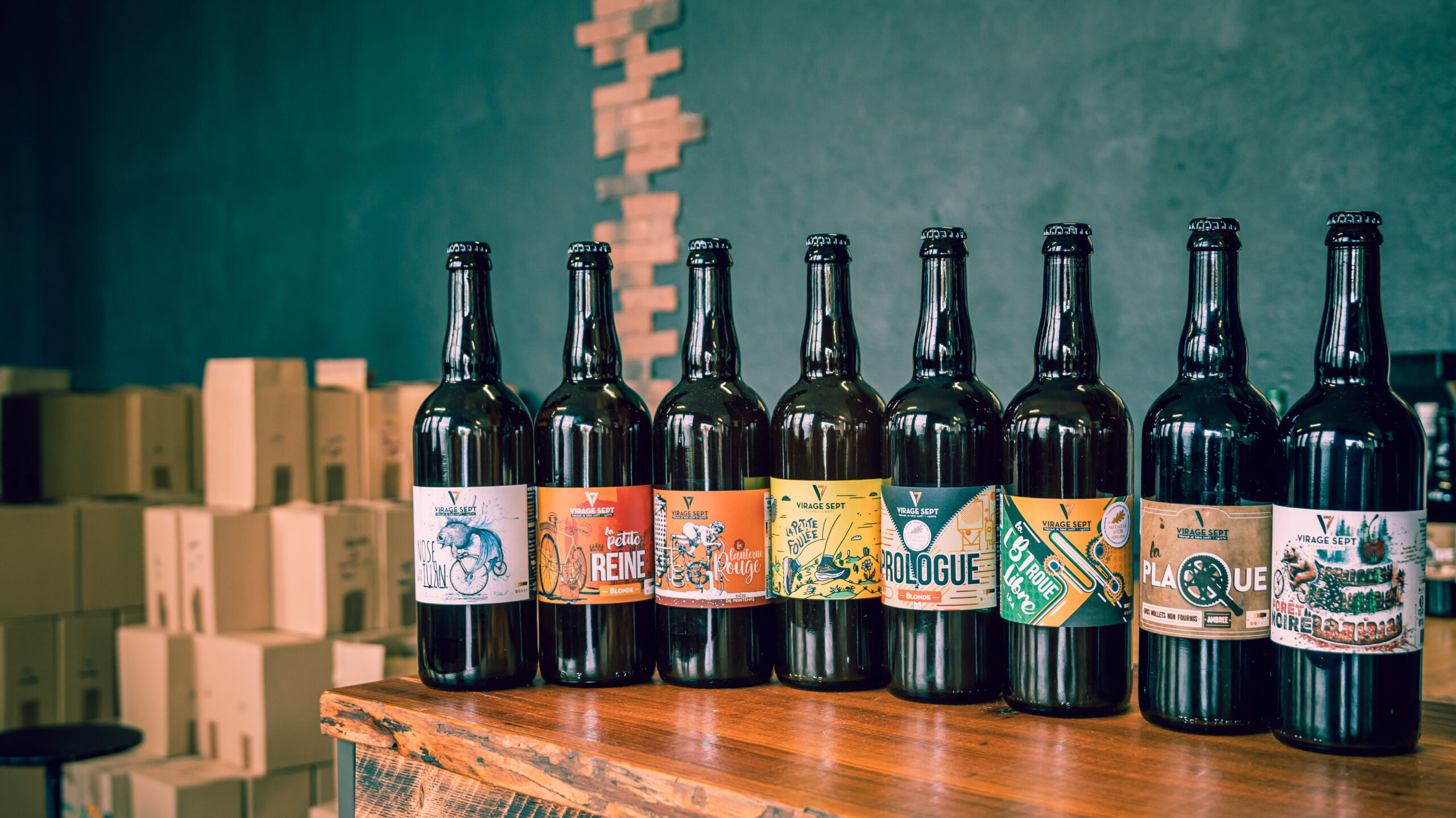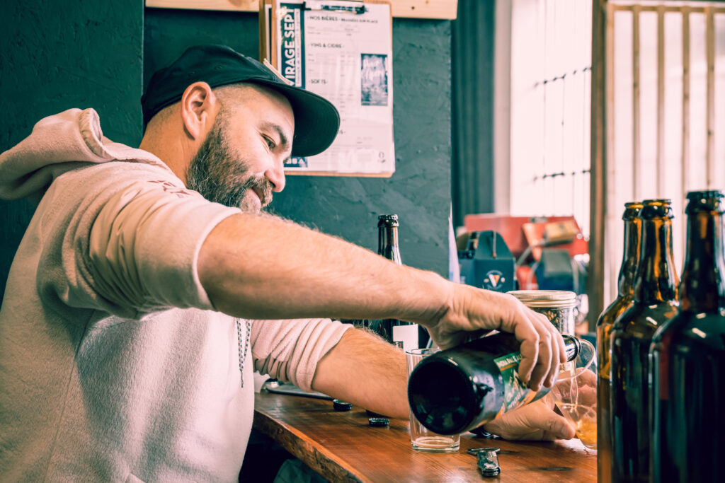 Dès notre arrivée, nous avons été accueillis par Pascal, co-fondateur de la brasserie. Passionné et intarissable sur son métier, il nous a fait visiter l’atelier de production et nous a expliqué le concept unique de Virage Sept : une brasserie qui relie le monde du cyclisme et celui de la bière artisanale, autour d’un même esprit de liberté, d’effort et de partage.