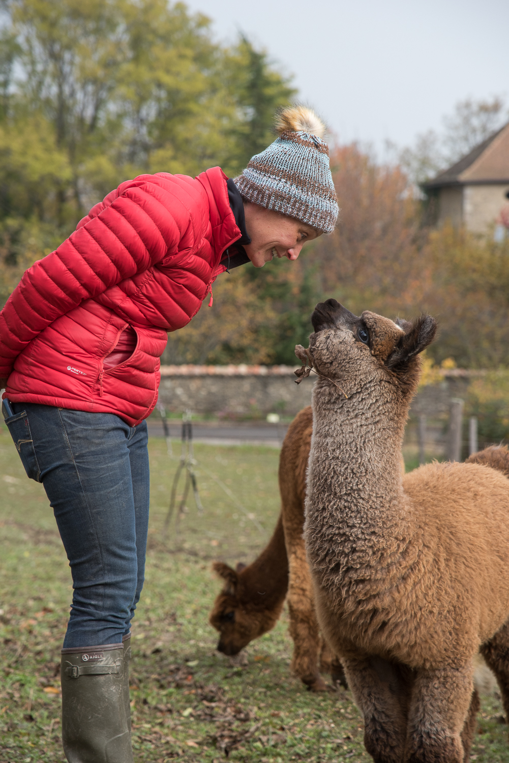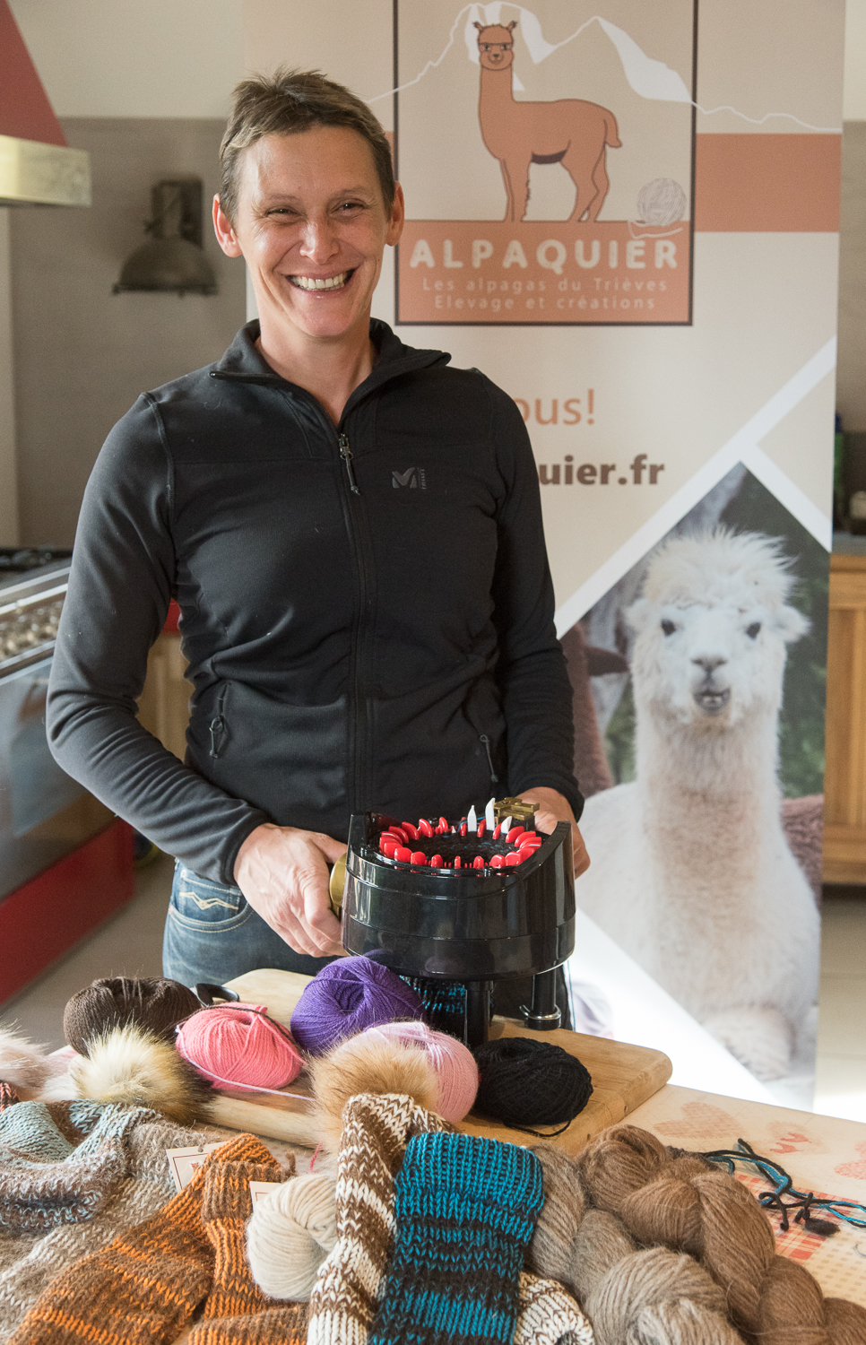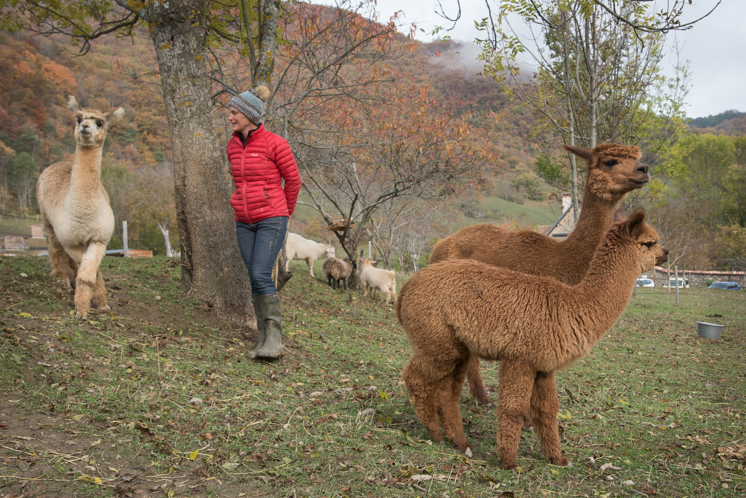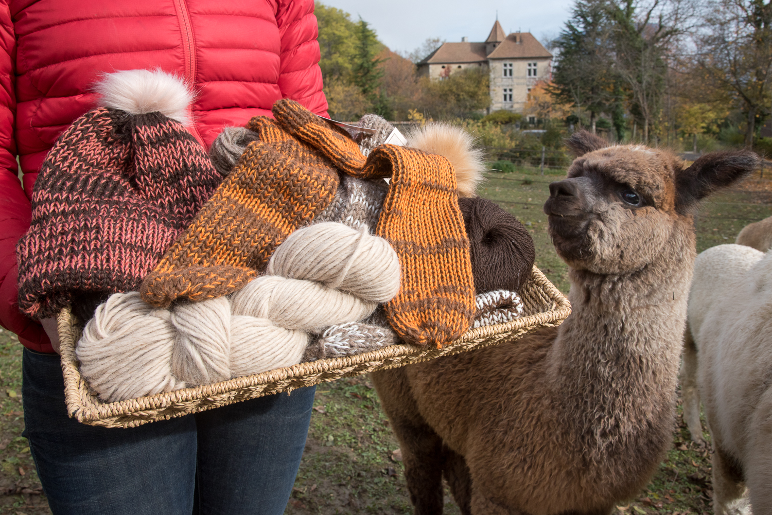 Alice élève des alpagas, chèvres, moutons, chevaux, cochons, lapins, poules et elle confectionne manuellement des articles