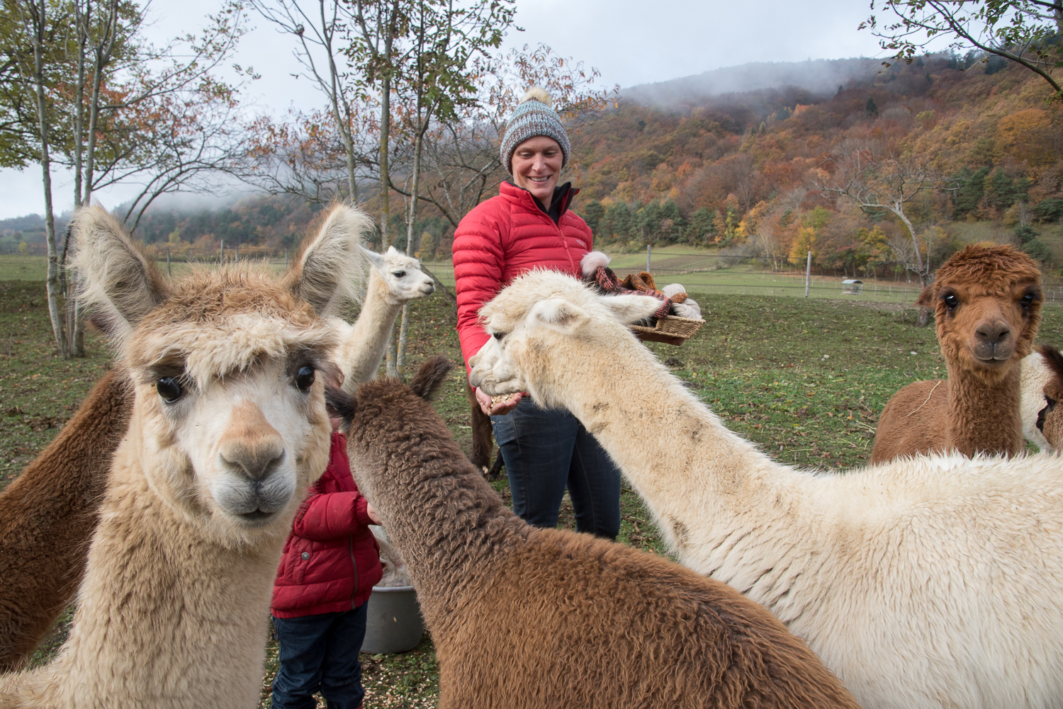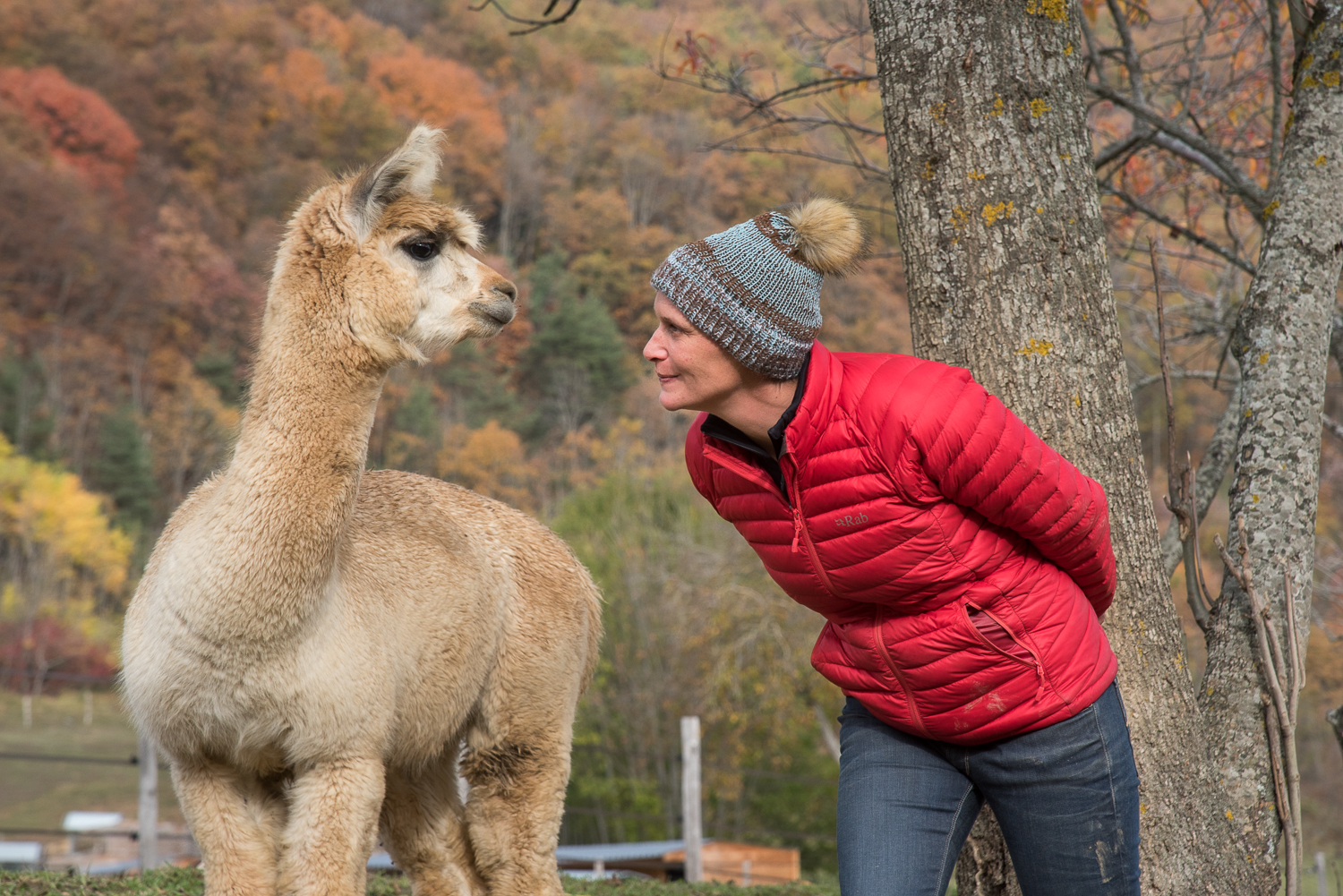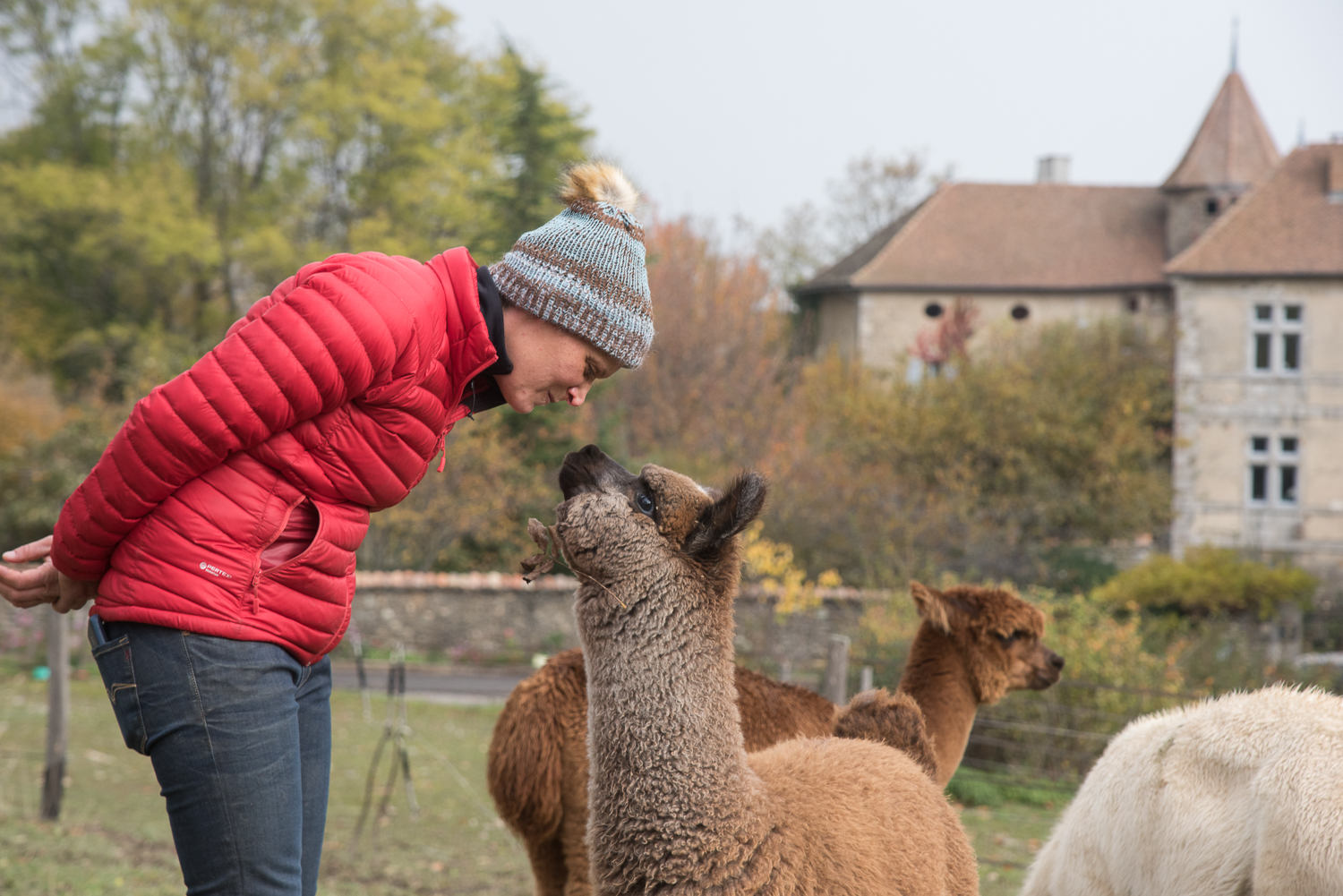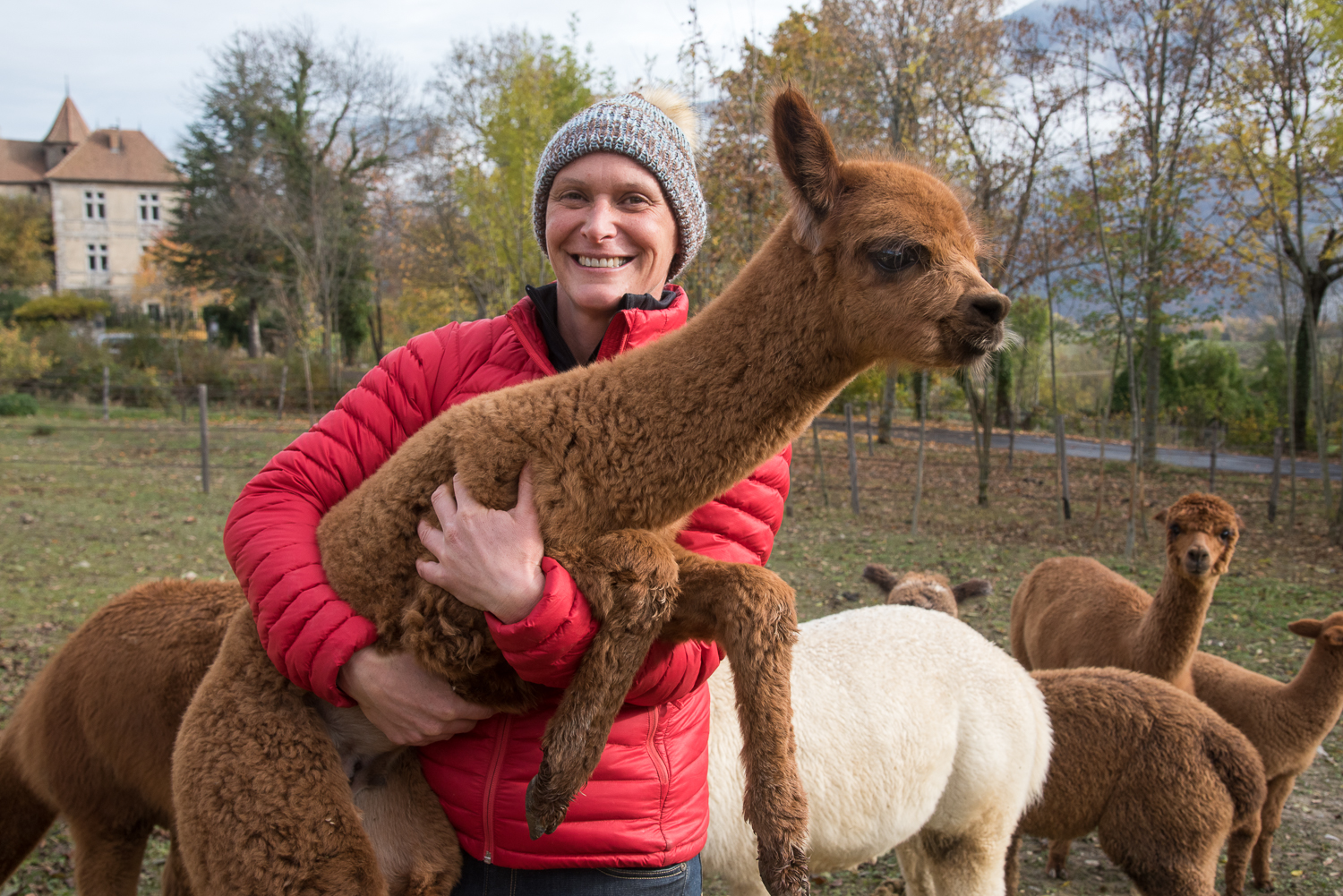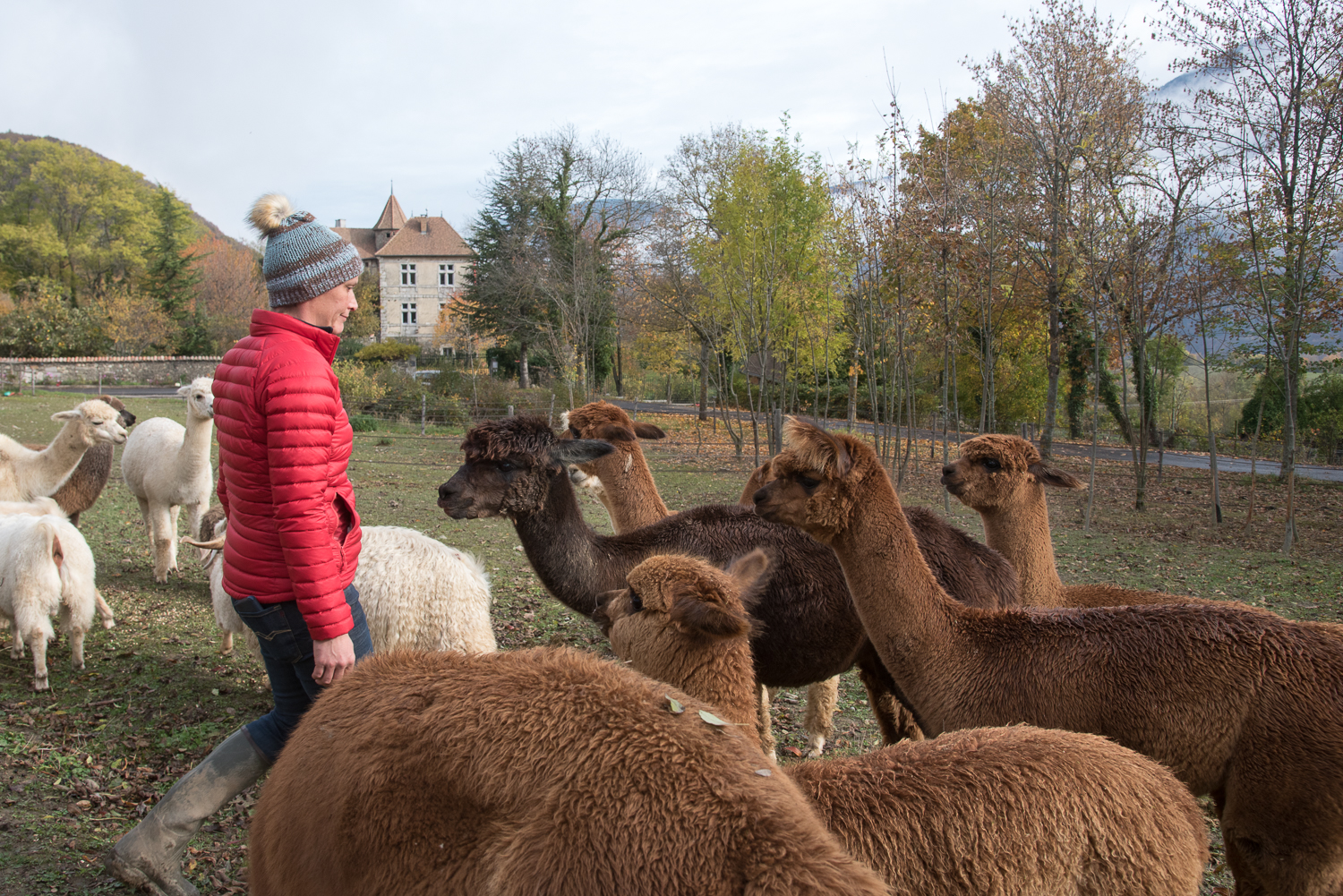 Alice élève des alpagas, chèvres, moutons, chevaux, cochons, lapins, poules et elle confectionne manuellement des articles