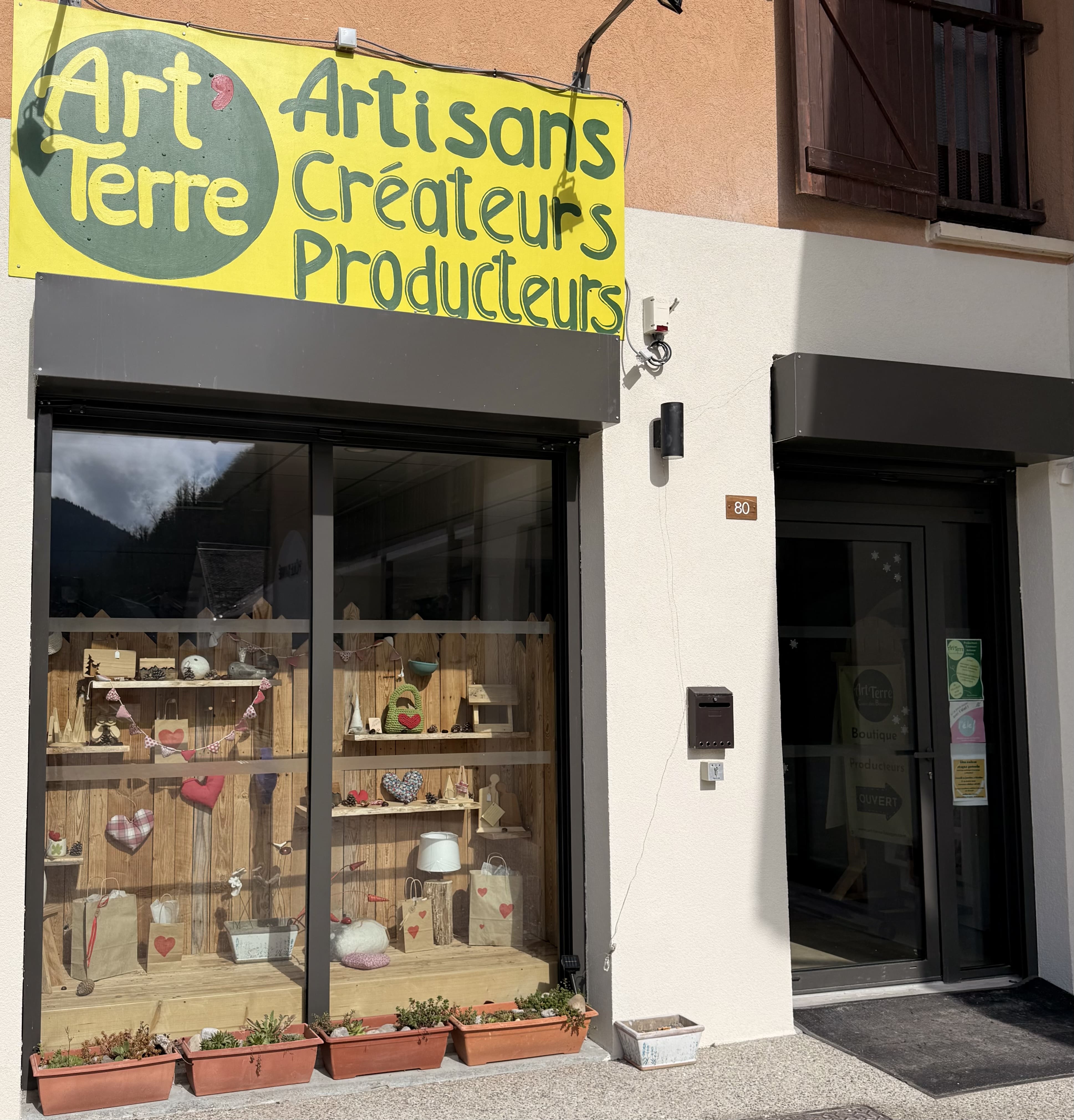 Art'Terre est une boutique située au Châtelard dans le Massif des Bauges, qui réunit une vingtaine d'Artisans, d'Artistes et de Producteurs locaux. Elle est gérée comme un collectif, dont le trait d'union est la solidarité, et le souhait du respect d'une véritable éthique environnementale et locale.