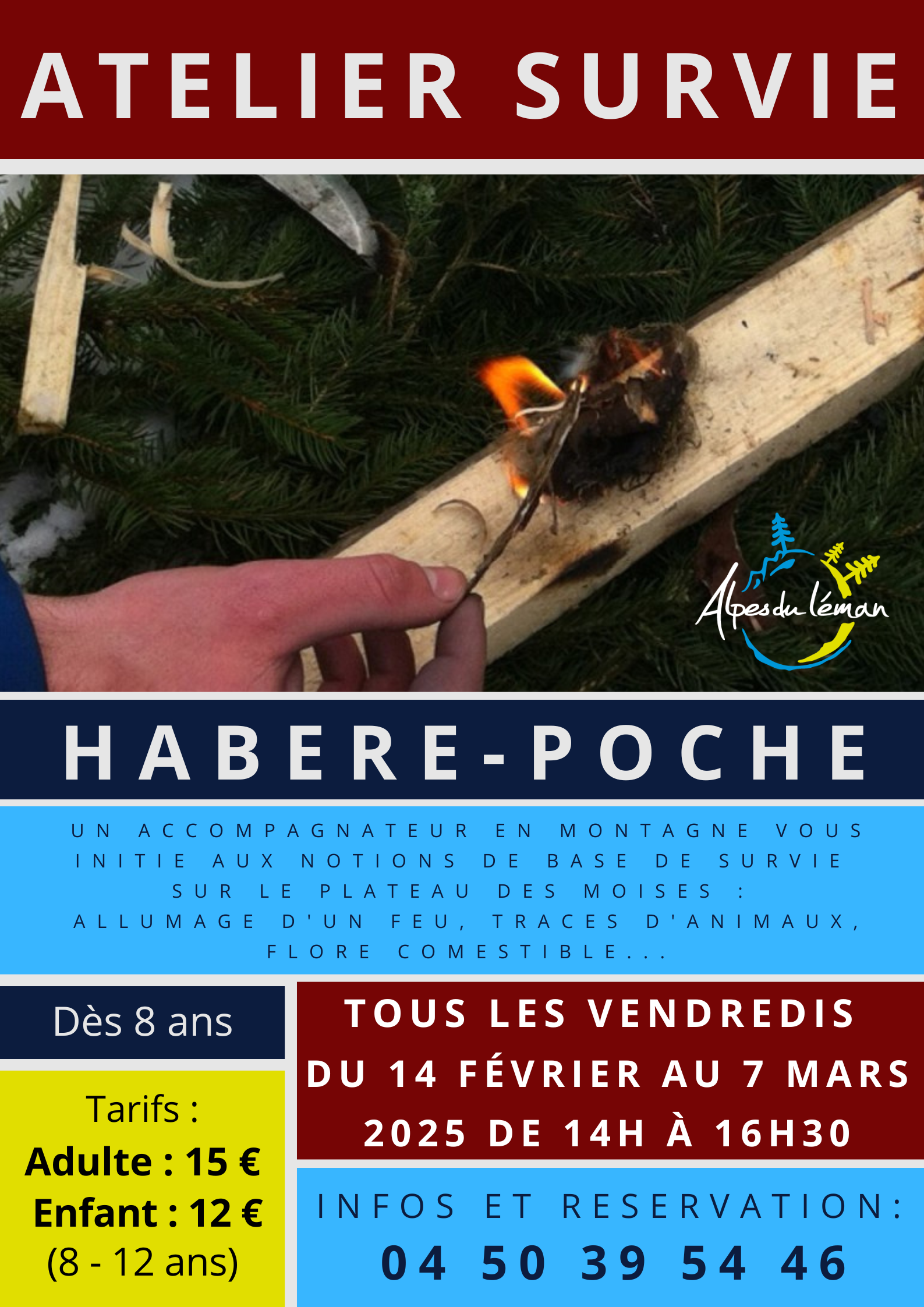 Un accompagnateur en montagne vous initie aux notions de base de survie : modes de construction d'un igloo, allumage d'un feu dans la neige, traces d'animaux,, flore comestible...