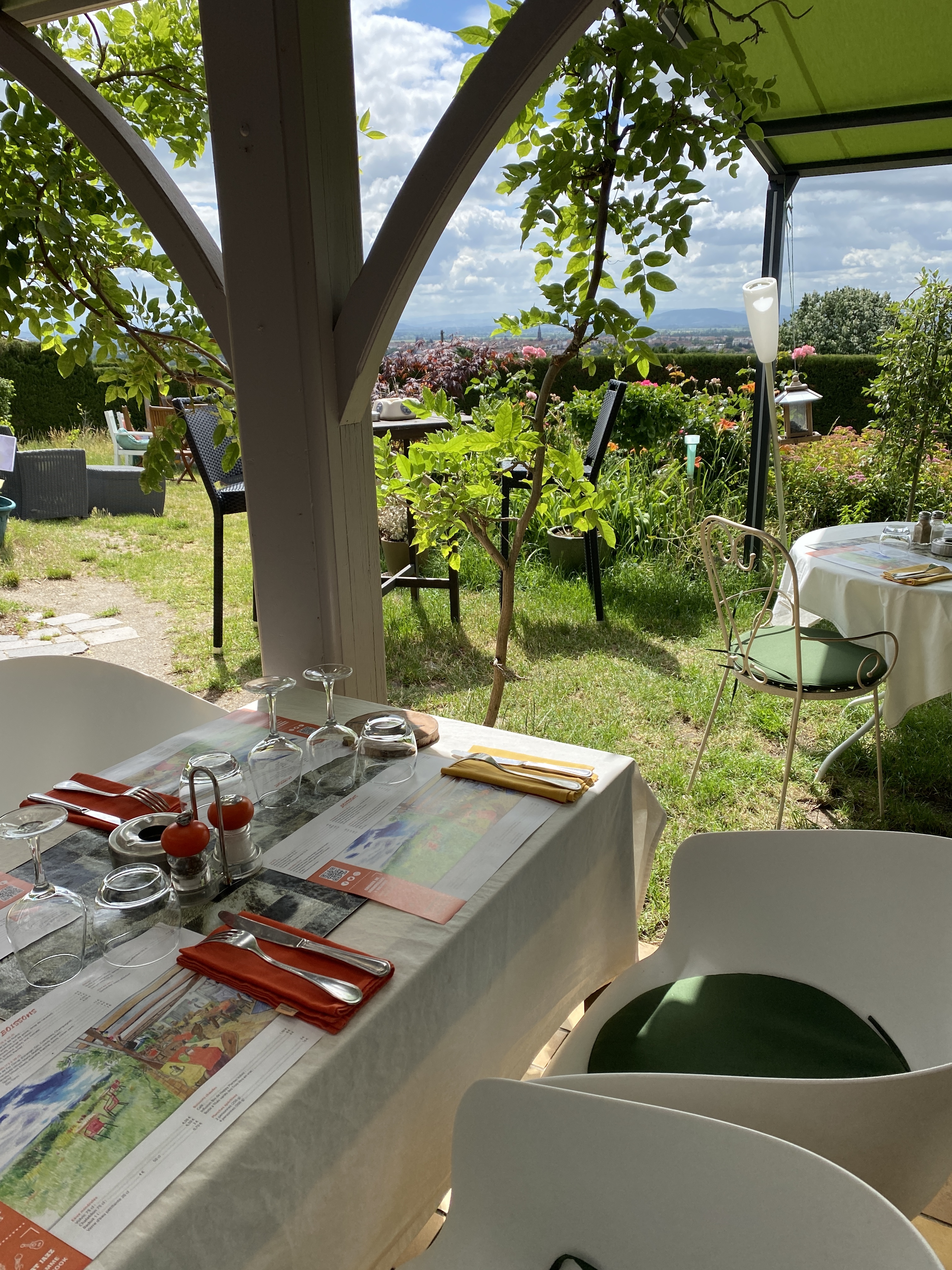 auberge de caractère au porte de la ville, entourée d'espaces naturels. départ de randonnées, vue panoramique. produits de producteur au fil des saisons, membre du collège culinaire de France. sensibilisation à l'environnement, par la création, d'un système de phytoépuration, et de revalorisation des déchets avec des animaux.