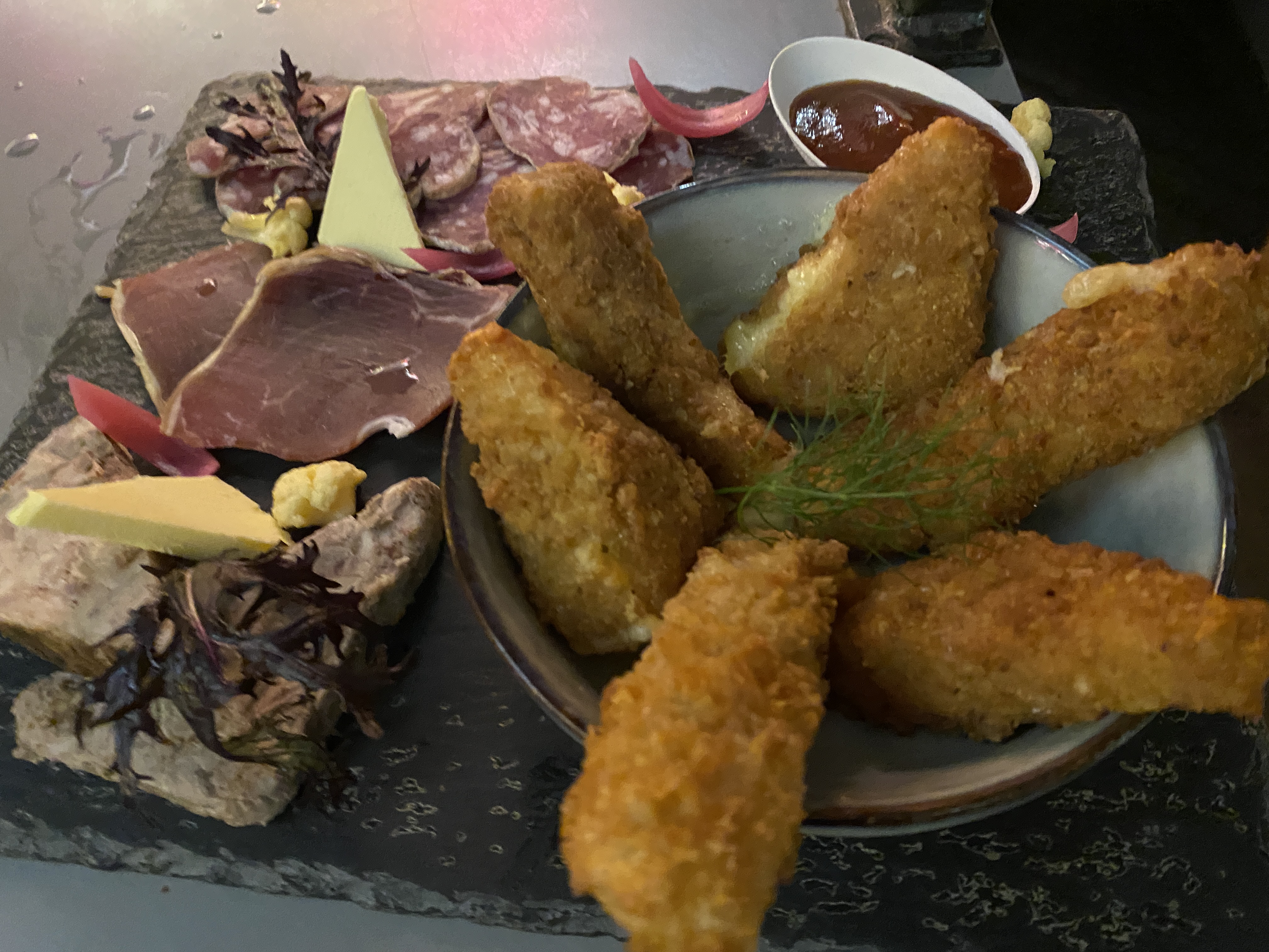 Menu du Terroir, suggestion à l'ardoise, Assiette végétarienne, Cuisses de Grenouilles.