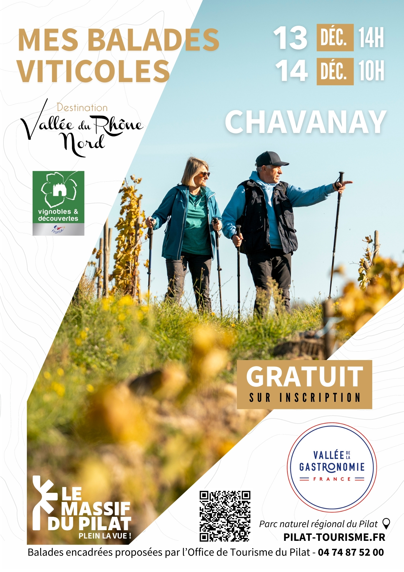 Profitez du marché aux vins de Chavanay et venez arpenter les côteaux de Saint-Joseph et Condrieu en compagnie d'un accompagnateur en montagne qui vous éveillera aux richesses de ce terroir.