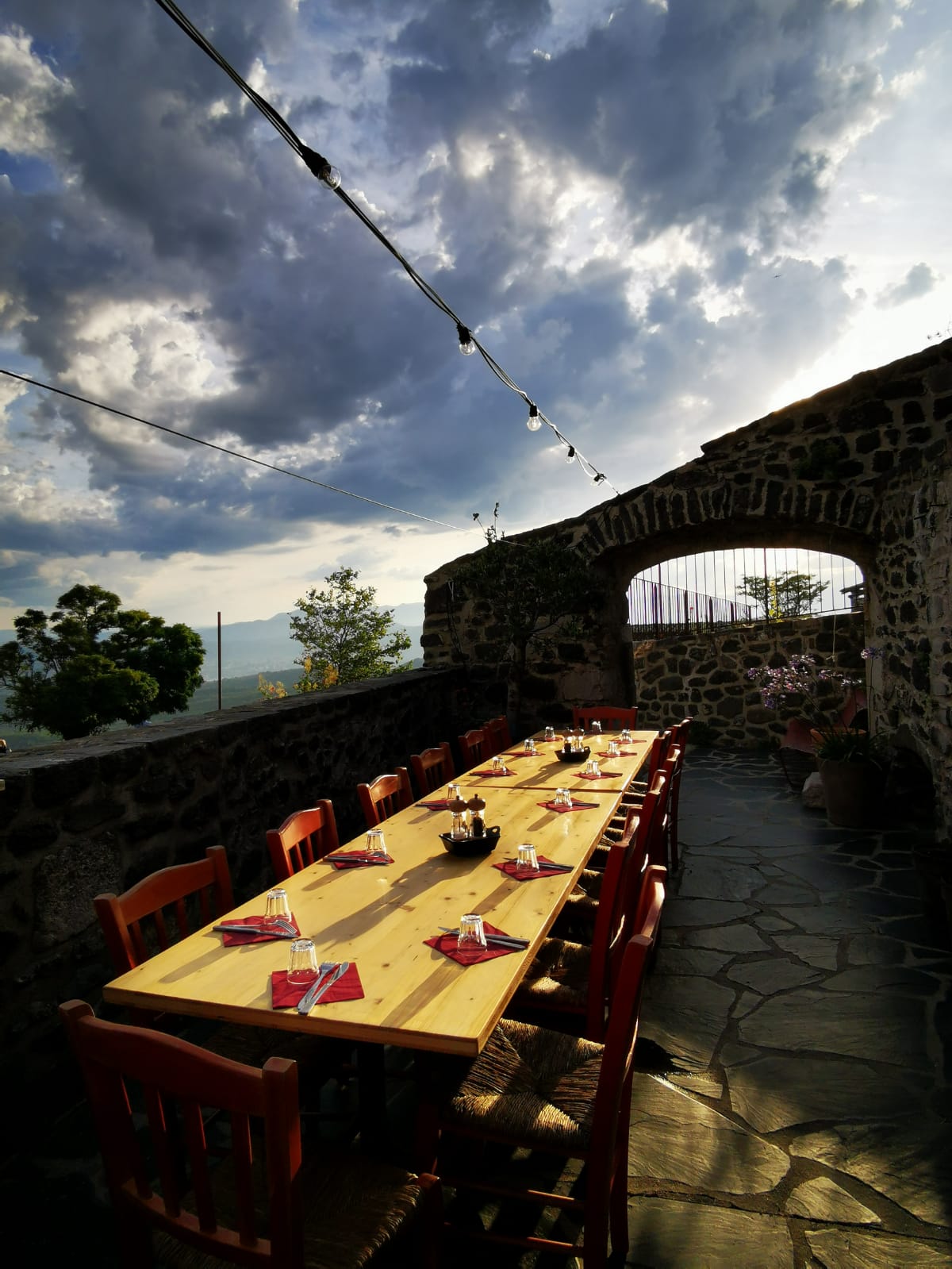 Quand on passe par le belvédère de St Laurent sous Coiron l'après midi, on est de suite attiré par la délicieuse odeur des cuisines du bistrot ! La salle voûtée est superbe, authentique dans une ambiance très intimiste. Le patron est très sympathique et parle volontiers de ses produits, de ceux de son jardin... Les plats sont locaux et recherchés, et la vue depuis le village perché est incomparable ! Il est aussi possible de venir boire un verre après une belle balade.