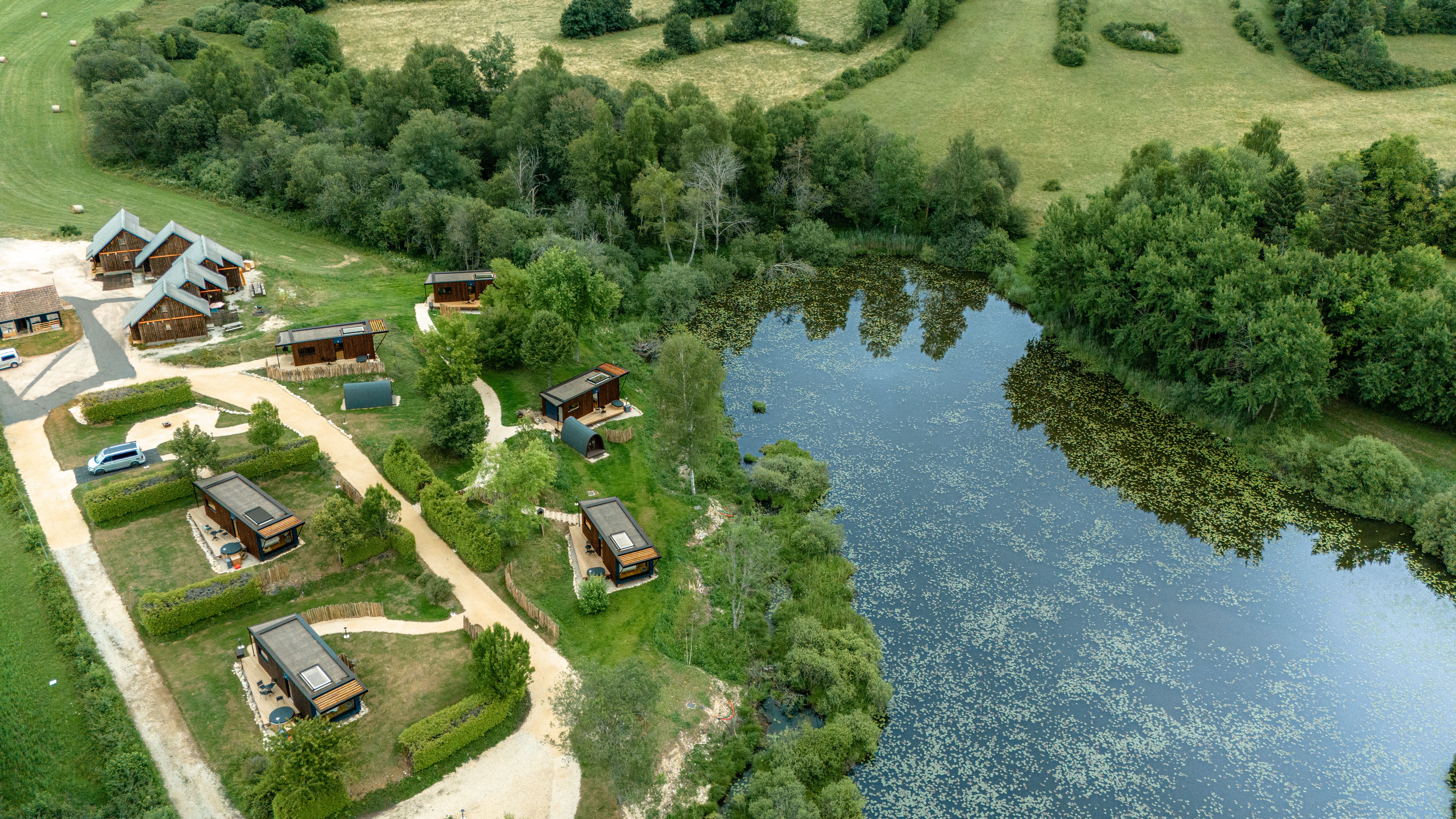 Les écolodges Bleu Minuit, situés à une altitude de 830 mètres sur le plateau d'Hauteville, offrent une expérience unique au cœur d'un environnement naturel préservé, dépourvu de toute pollution lumineuse : idéal pour admirer les étoiles !