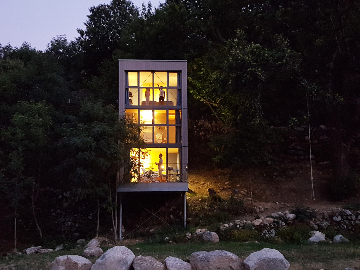 L’hébergement insolite la Tour bleue est une cabane sur trois étages implantée sur d'anciennes faïsses avec une vue imprenable
