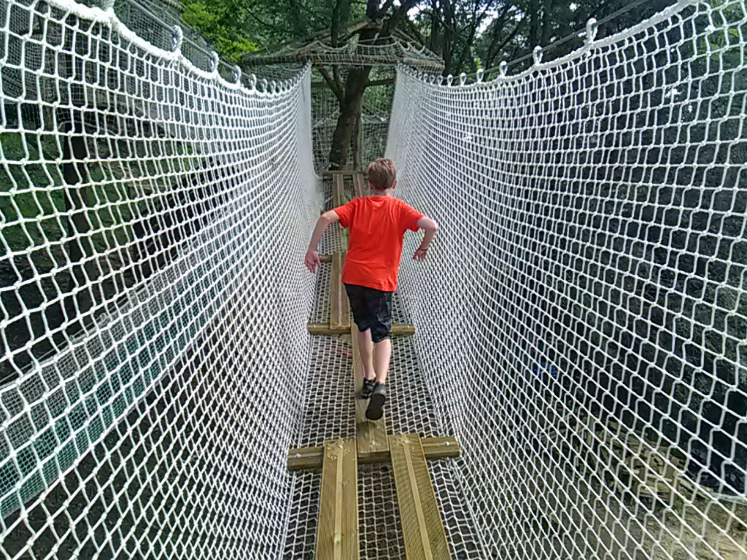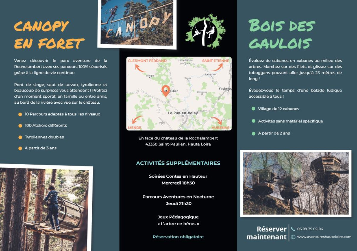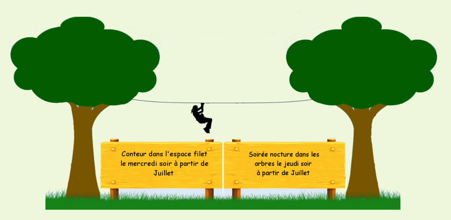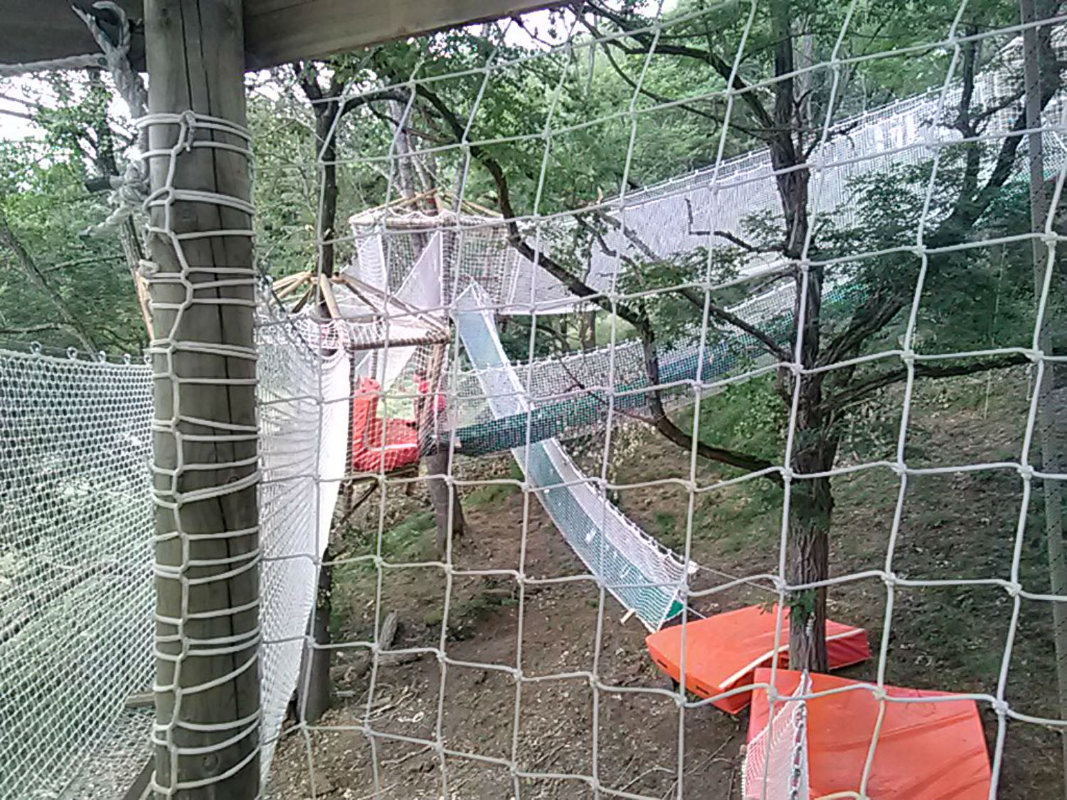 Au parc accrobranche "Canopy en forêt" (parc de cabanes, filets et toboggans). Evoluez de cabanes en cabanes au milieu des arbres et glissez sur des toboggans pouvant aller jusqu’à 23 mètres de long !