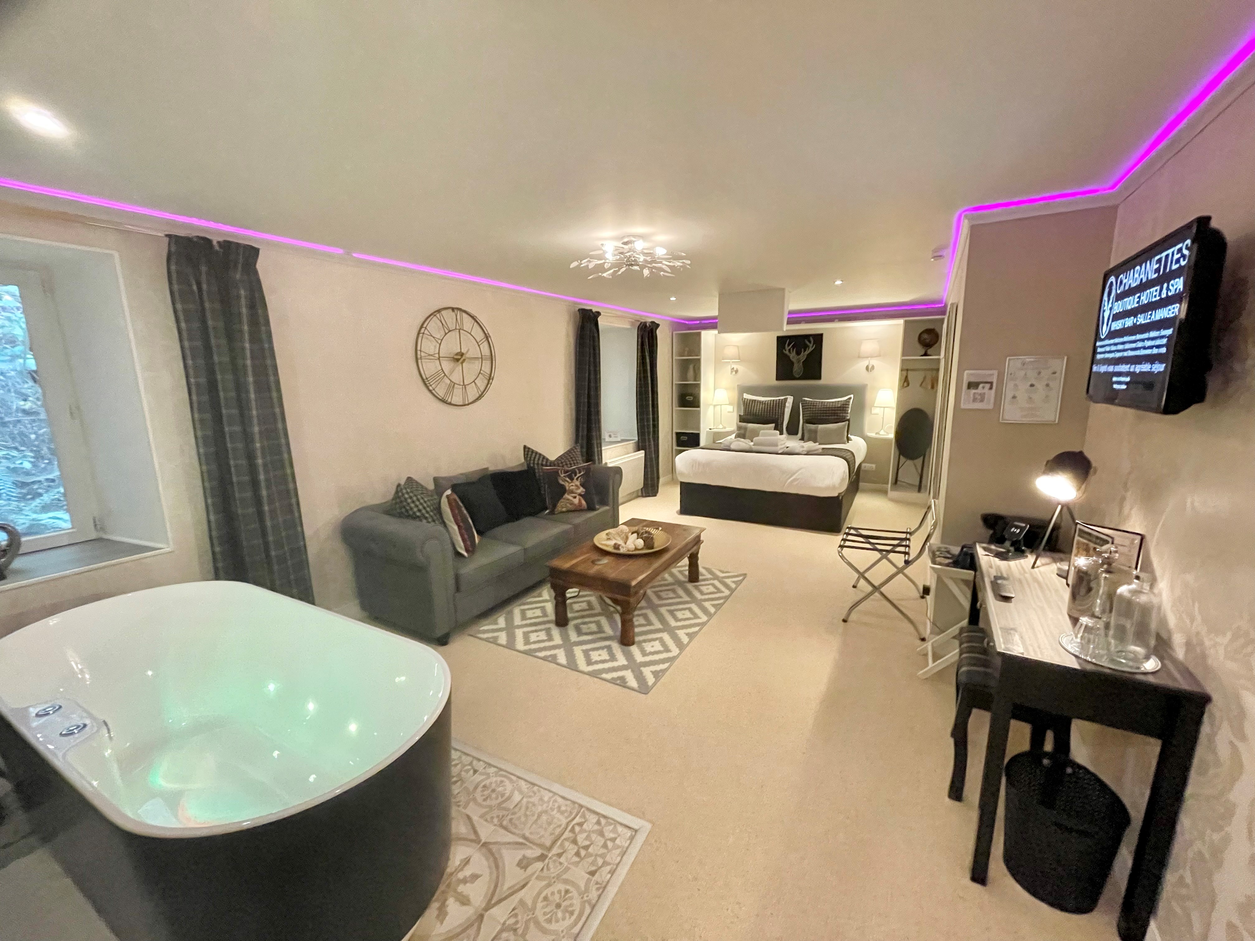 Petit "Boutique Hôtel" de bien-être, charme et calme avec Spa, Whisky Bar, salle à manger et terrasse au bord de la rivière.