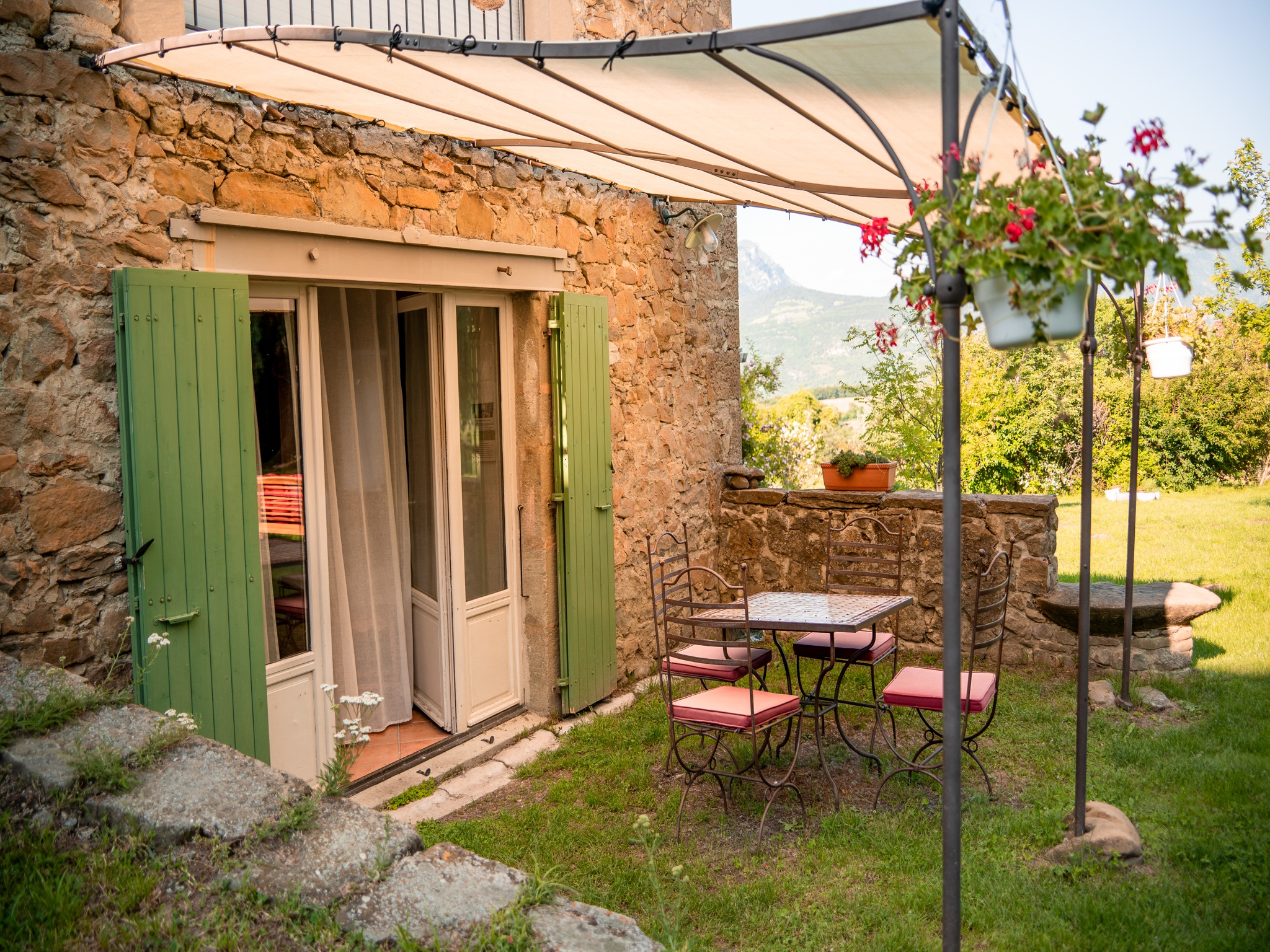 Sur ferme bio, dans un havre de paix au cœur de la nature, grande et confortable chambre d’hôtes avec vue panoramique sur la forêt de Saoû et la montagne de Couspeau. Accès indépendant et de plain-pied. Terrasse . Vaste espace extérieur.