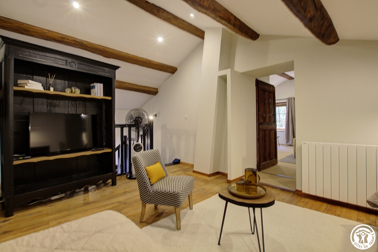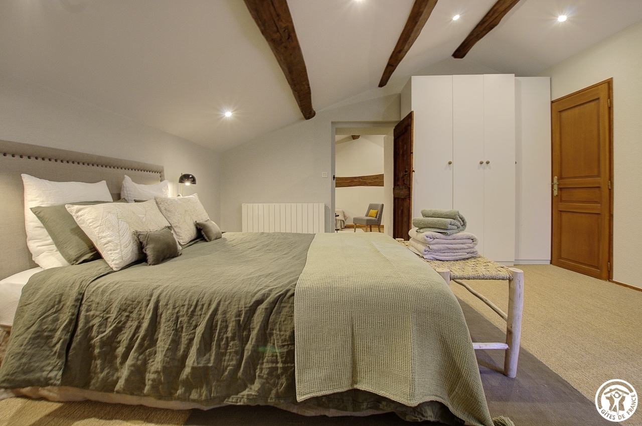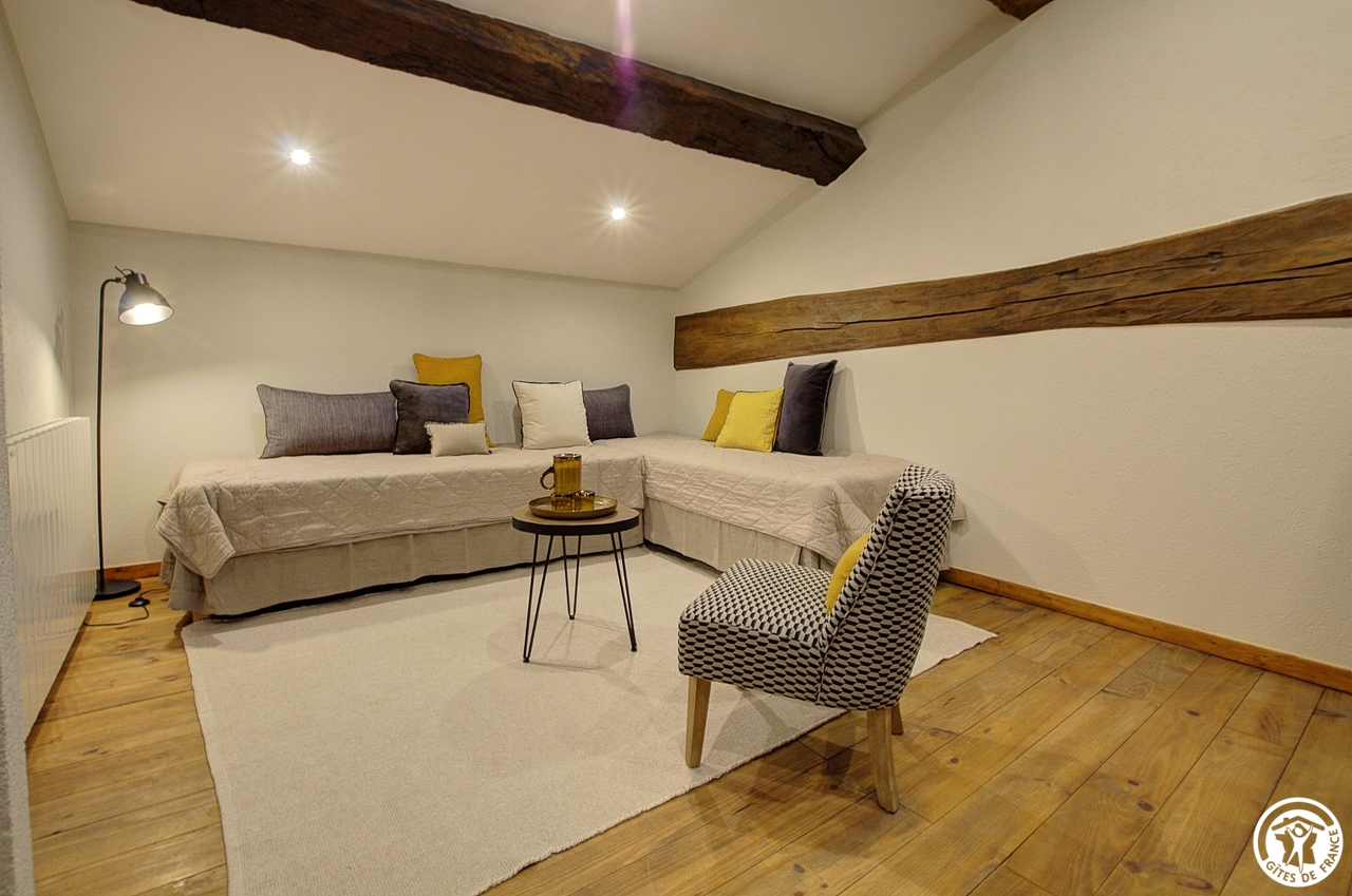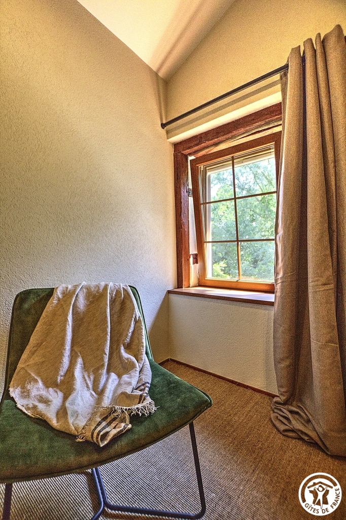 Céline vous ouvre les portes de sa nouvelle chambre située dans le prolongement de sa résidence principale et à proximité des 3 gîtes (un gîte de 6 personnes et deux gîtes de 5 personnes).