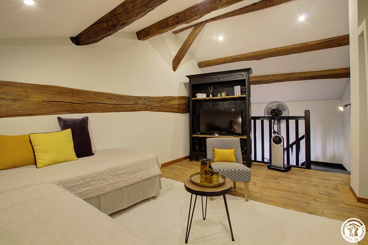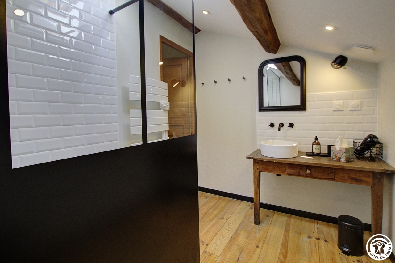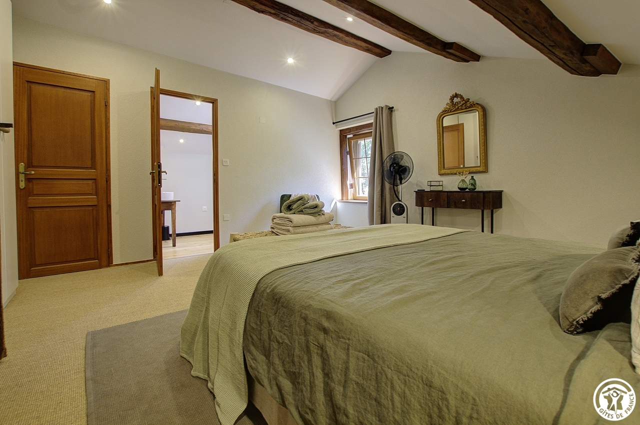 Céline vous ouvre les portes de sa nouvelle chambre située dans le prolongement de sa résidence principale et à proximité des 3 gîtes (un gîte de 6 personnes et deux gîtes de 5 personnes).