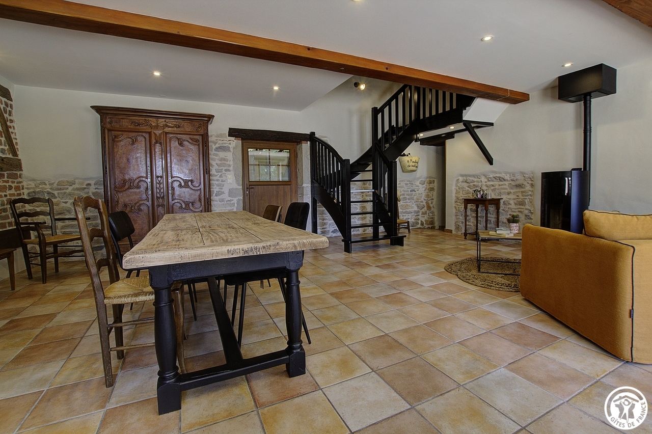 A Jayat, Céline vous ouvre les portes de ses deux chambres d'hôtes situées dans le prolongement de sa résidence principale et à proximité des 3 gîtes . Par un chemin commun, vous accéderez en bout de propriété sur une chambre familiale pour4 personnes comprenant un séjour et salon privatif à cette chambre et au 1er étage, une mezzanine avec deux lits simples et dans le prolongement une deuxième chambre équipée d'un lit en 160*200. Salle d'eau avec WC privative. La deuxième chambre "Côté Rivière" est conçue pour recevoir 2 personnes. Depuis son entrée indépendante, la chambre à la décoration industrielle, est composée d'un lit double (160x200), d'un petit espace détente avec plateau de courtoisie et, derrière la verrière, se trouvent la douche et le WC séparé privatifs. Le petit-déjeuner, copieux et avec des produits du terroir, sera pris soit dans la pièce de vie, soit à l'extérieur aux beaux jours. La table d'hôtes, sur réservation, sera proposée dans le restaurant traditionnel et gourmand de Céline où vous découvrirez les produits locaux et safranés. Lors de votre étape ou votre séjour, des week-ends sur le thème du safran vous seront proposés et ainsi que la possibilité d'un moment de détente, de relaxation et de bien-être lors d'une séance de massage.