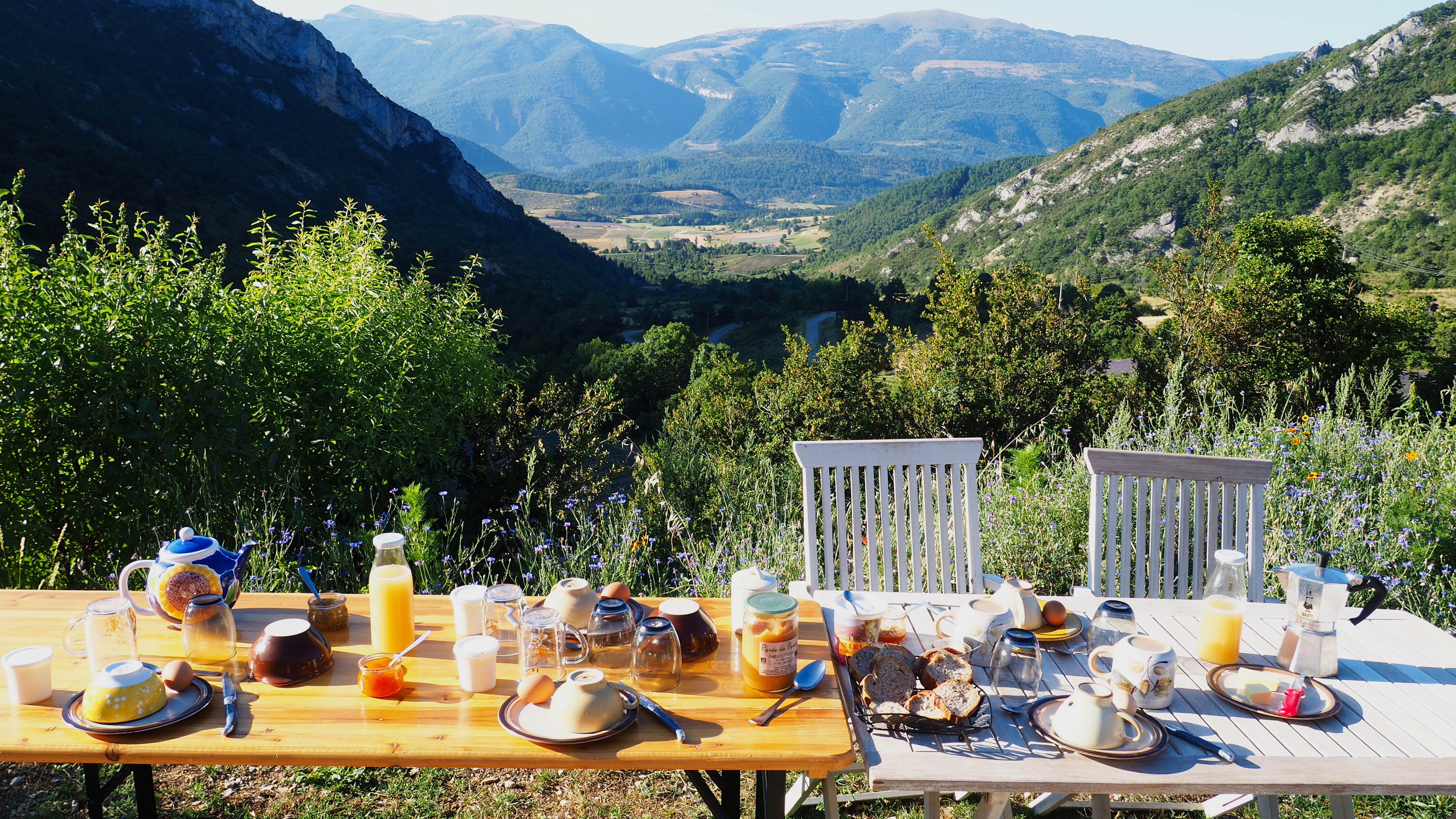De jolis petits villages provençaux parsèment la vallée de la Méouge, en contrebas ; et, à moins d’une heure de voiture, de belles cités vous tendent les bras. Montbrun-les-Bains, Sault, Sisteron, Orpierre… autant d’occasions d’aller flâner dans les ruelles et de faire le marché.