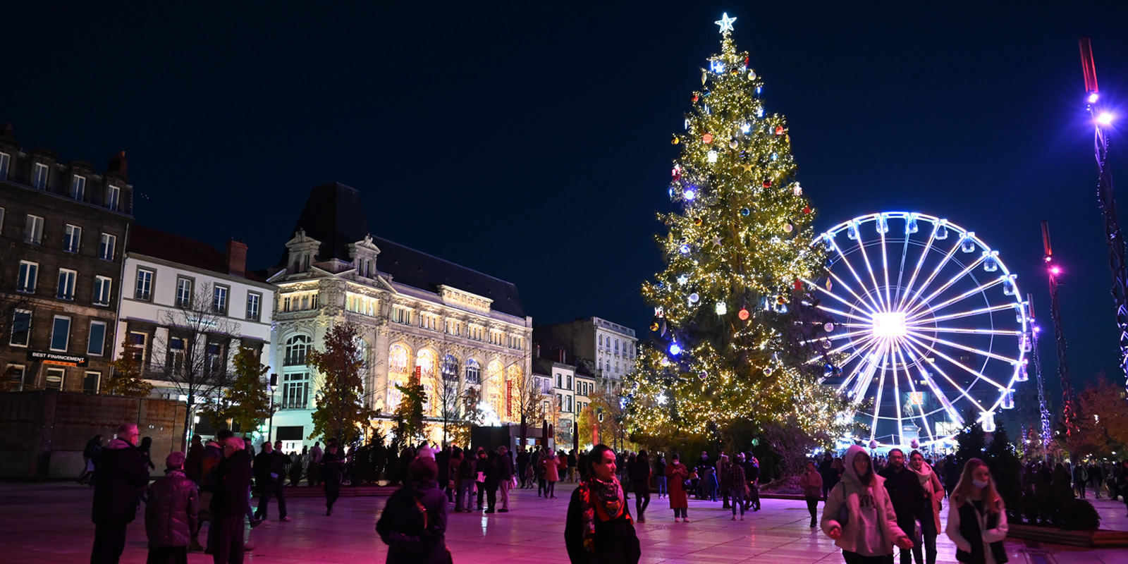 Pour un public familial, visite du centre historique de Clermont de la place de la Victoire à celle de Jaude : sous les illuminations de Noël, la crèche de la cathédrale, les gargouilles, les fontaines, l’immense sapin illuminé et les petits chalets du marché !