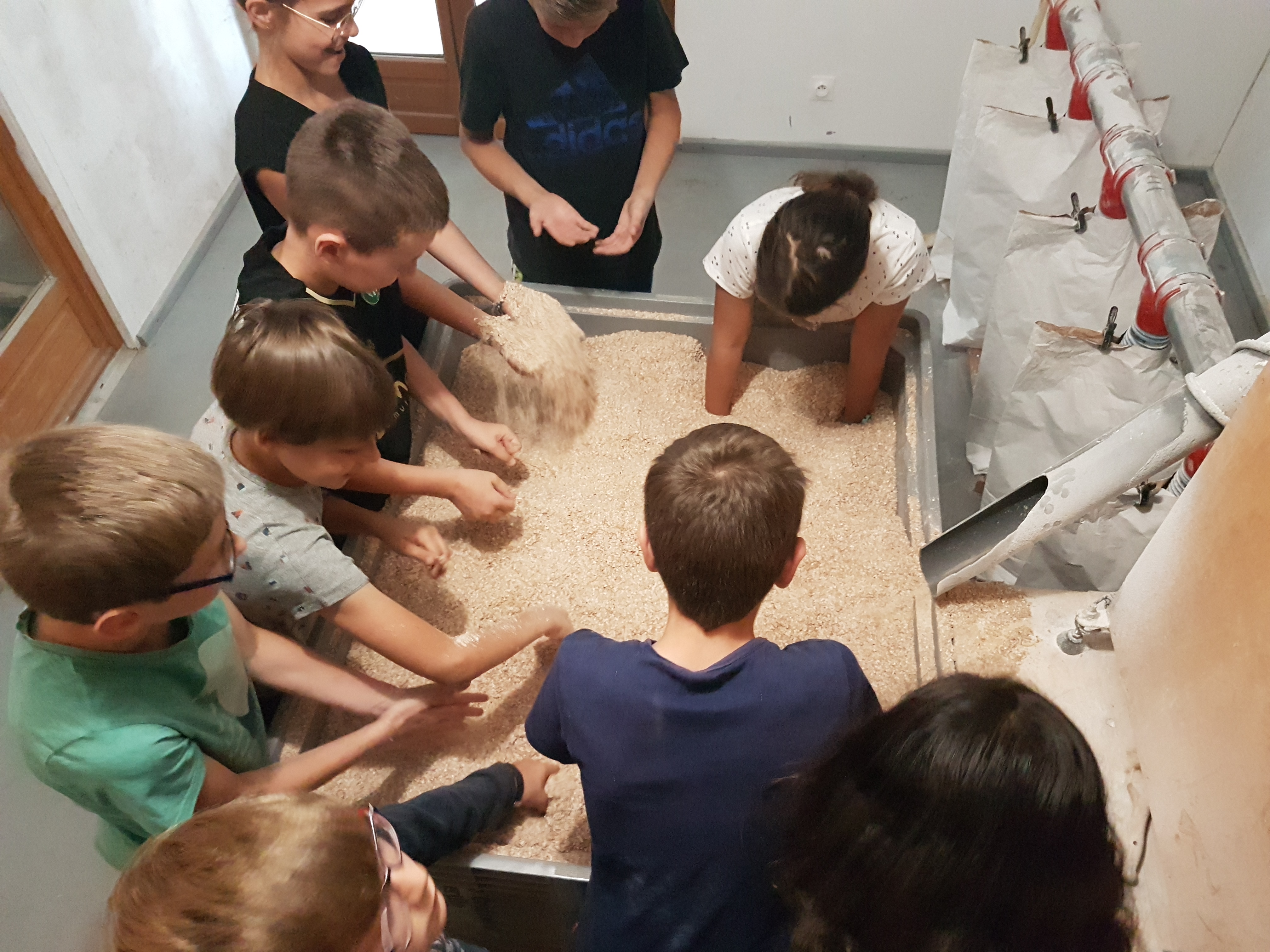 Atelier pizza collaboratif avec les produits de la ferme, visite des champs, du moulin et du fournil, cueillette de plantes aromatiques au jardin-forêt.