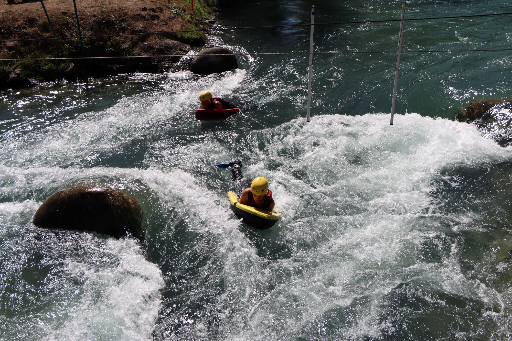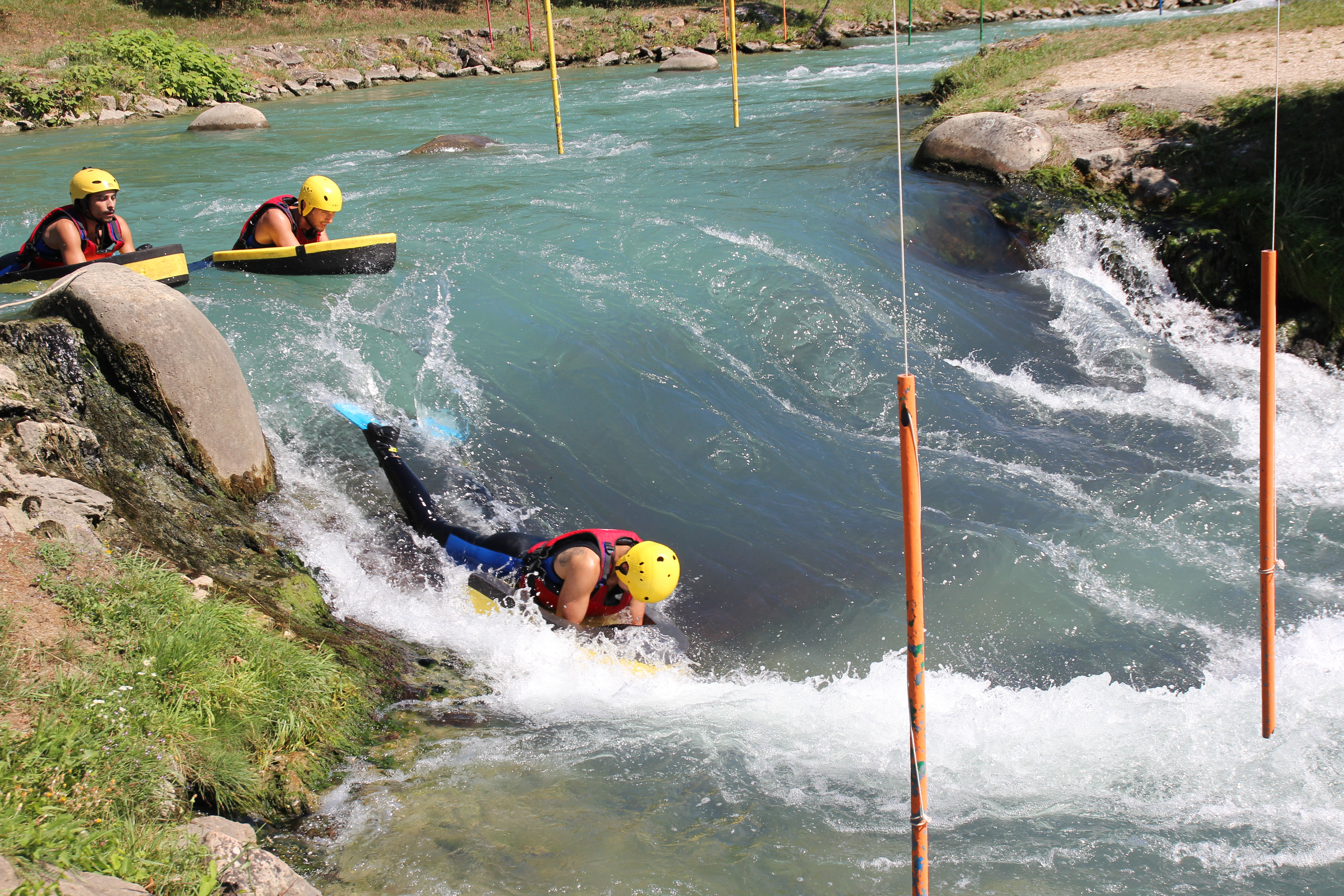 L'hydrospeed est un de sport aquatique qui consiste ici à descendre la rivière artificielle de l'Isle de la Serre en utilisant un flotteur en mousse, tout en nageant avec des palmes. Cette discipline ludique offre une expérience unique en eaux vives.