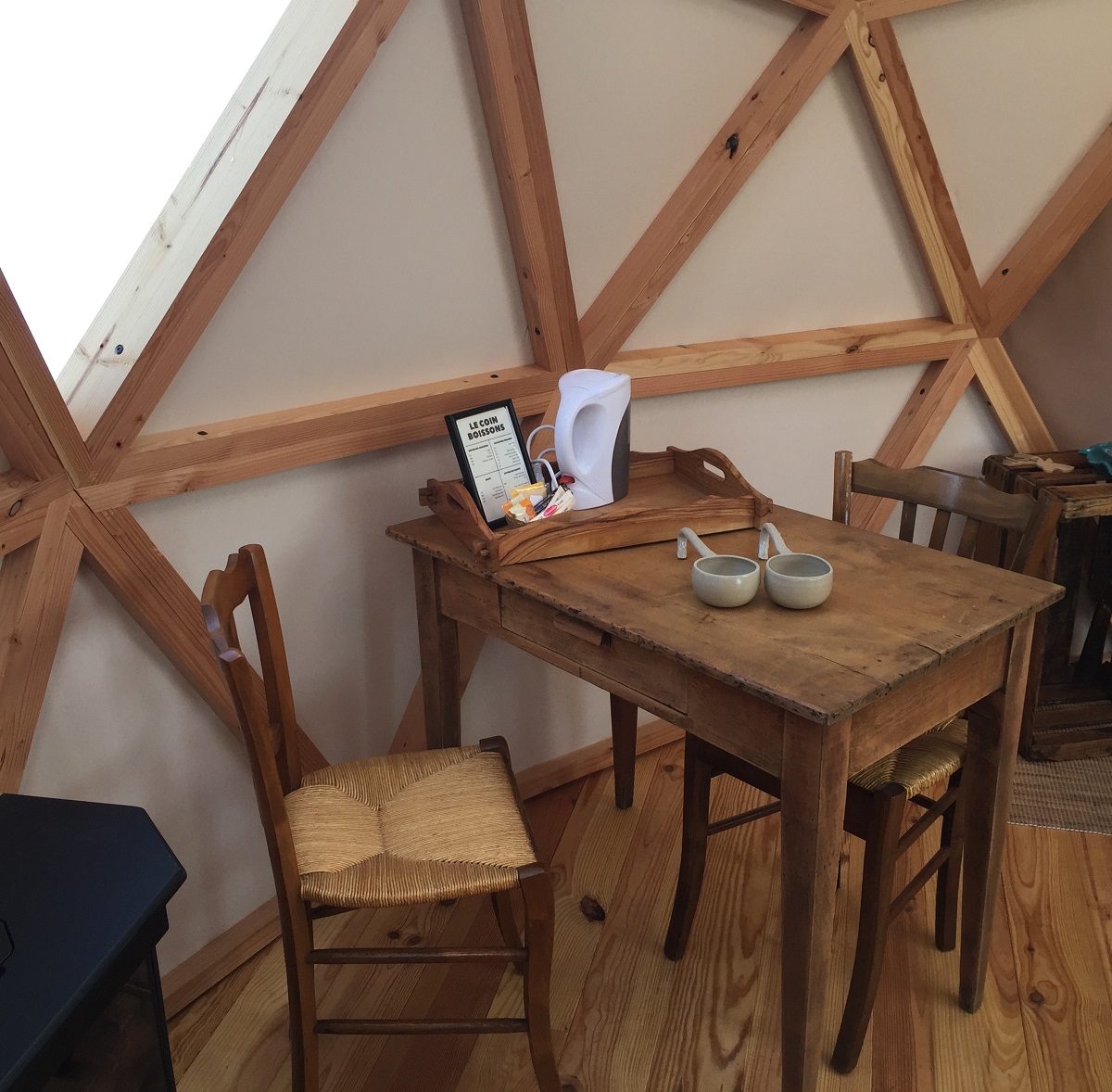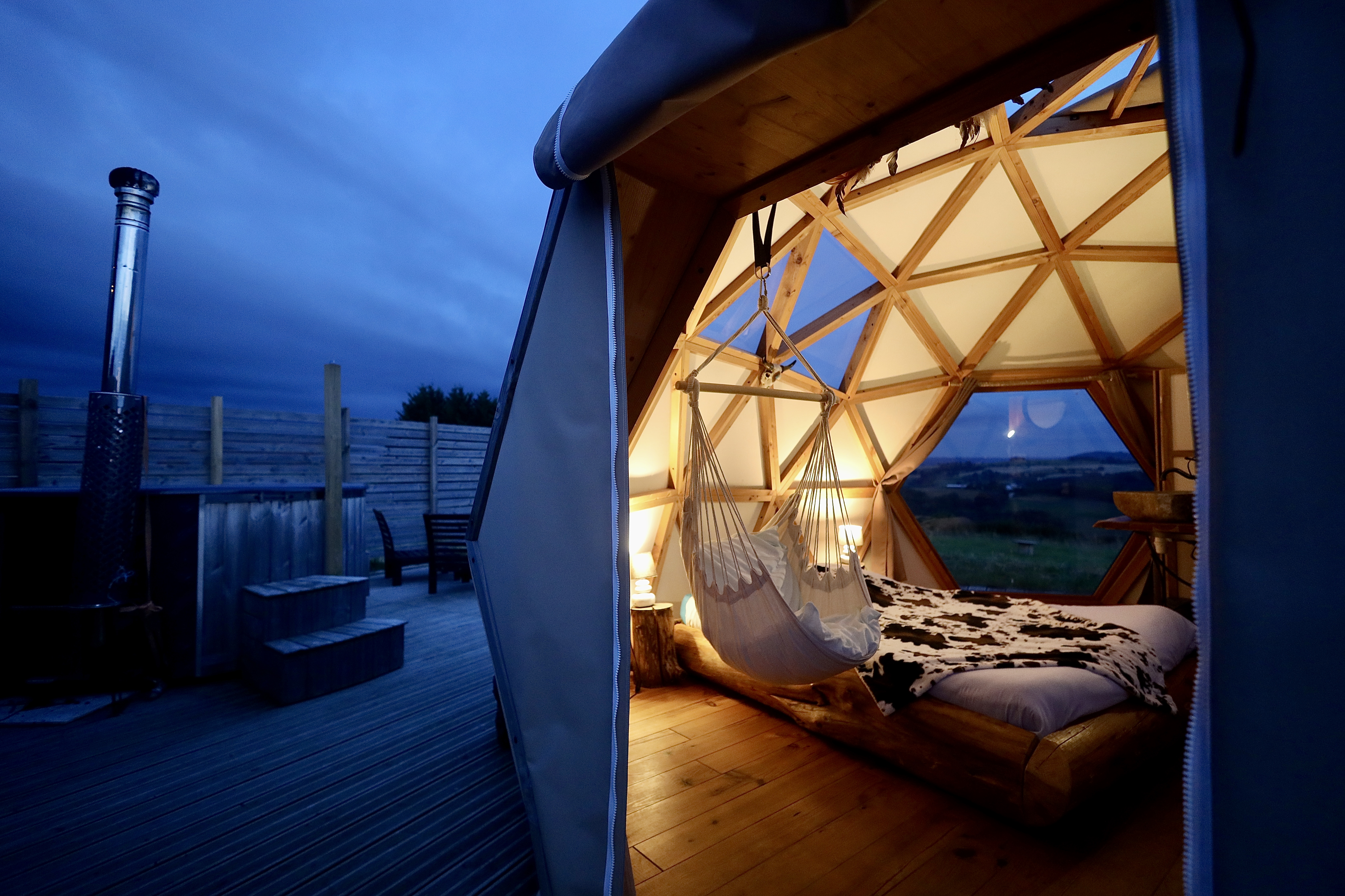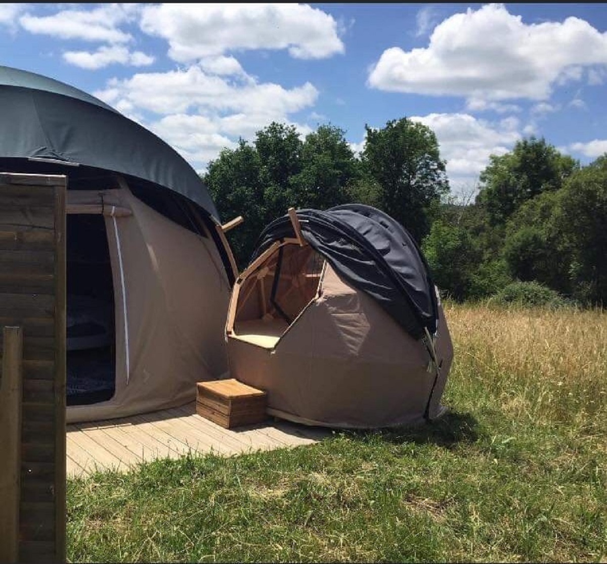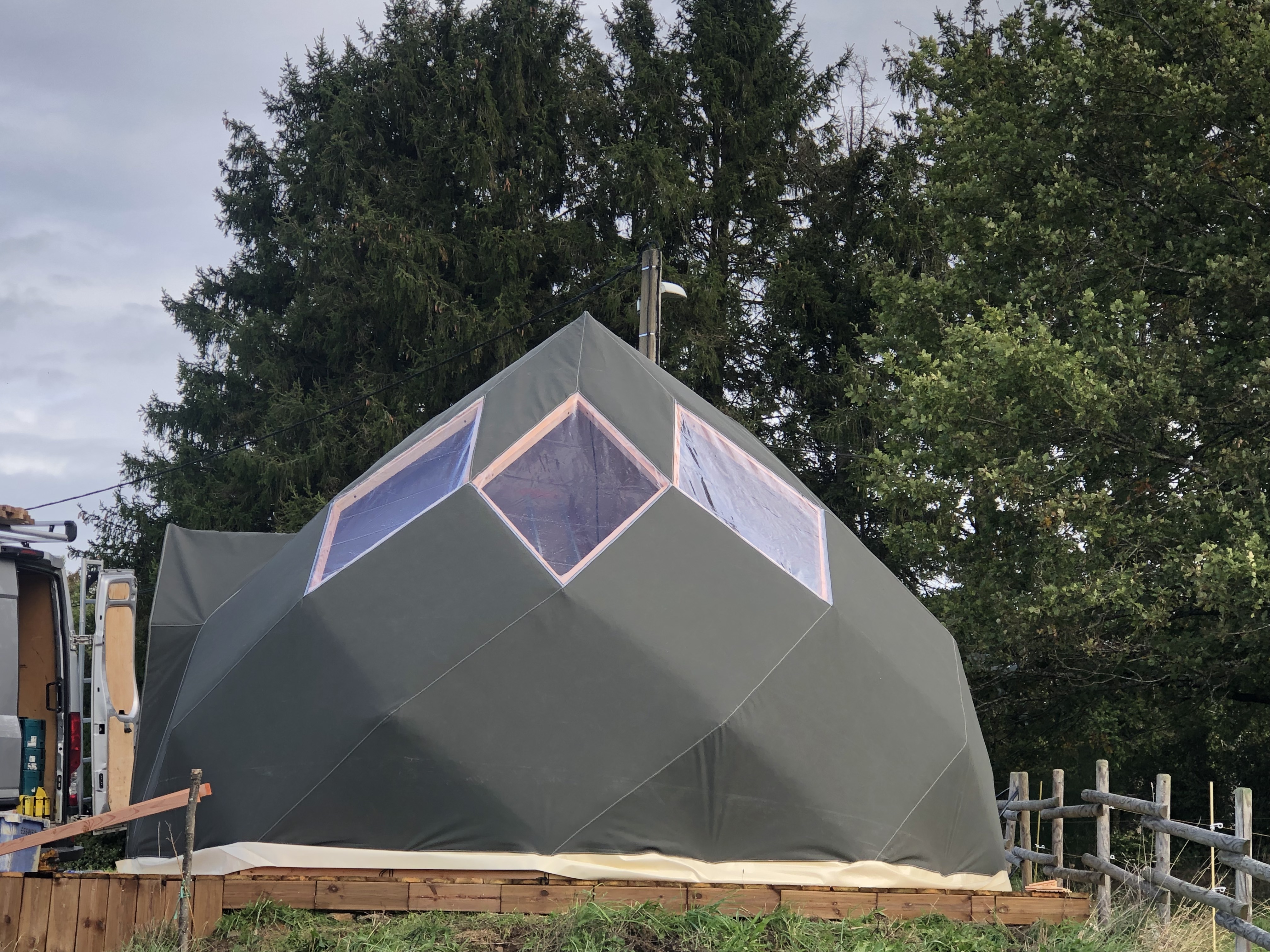 Hébergements insolites dans des dômes en bois et un zôme, décorés différemment et équipés de salle d'eau/ WC, ainsi que de spas privatifs. Structures isolées et chauffées. Différentes formules repas pour le soir. Petit-déjeuner inclus.