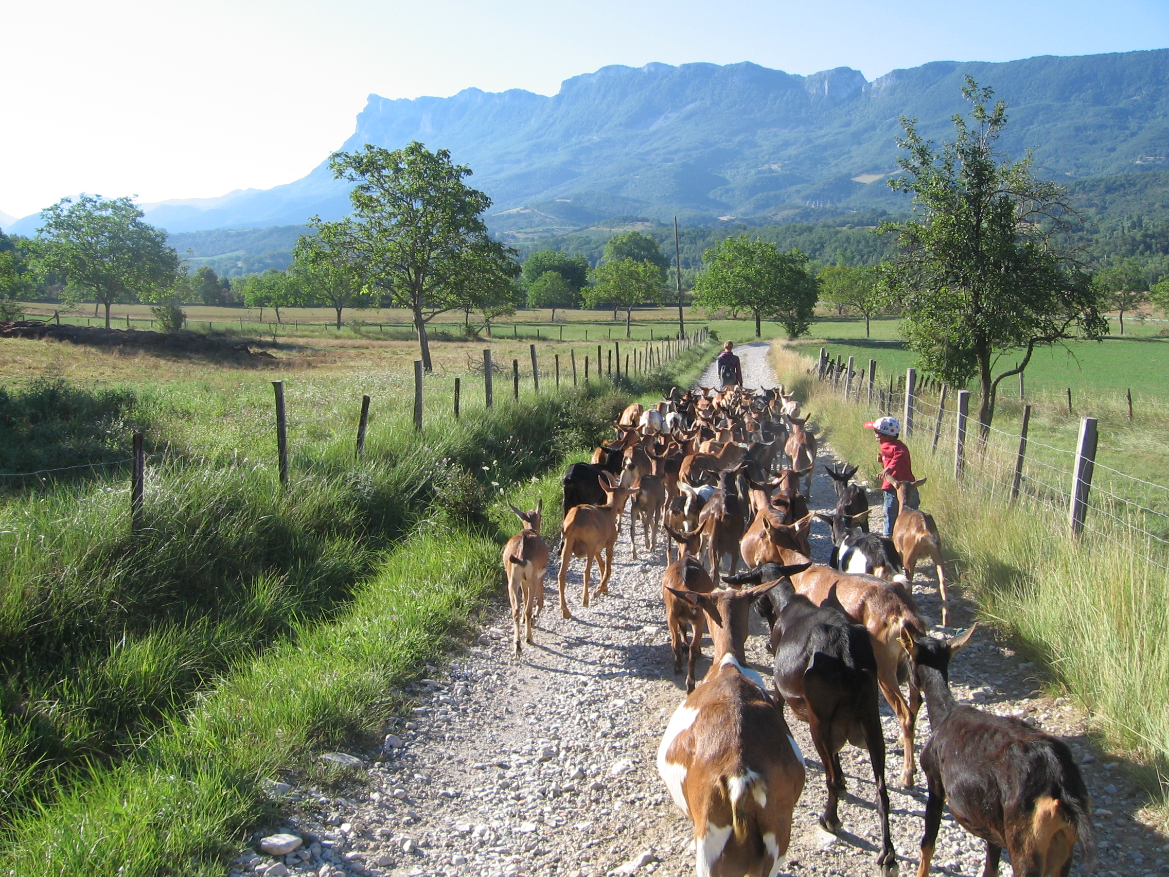 Nous sommes Mathieu et Julie, un jeune couple d'agriculteurs en agriculture biologique. Nous élevons des chèvres et des cochons nourris avec les cultures de la ferme. Nous avons aussi une aire naturelle de camping en bordure de la rivière Drôme. Notre mot d'ordre est de préserver l'environnement, par nos pratiques culturales, par les espaces dédiés à la biodiversité, et par nos infrastructures.