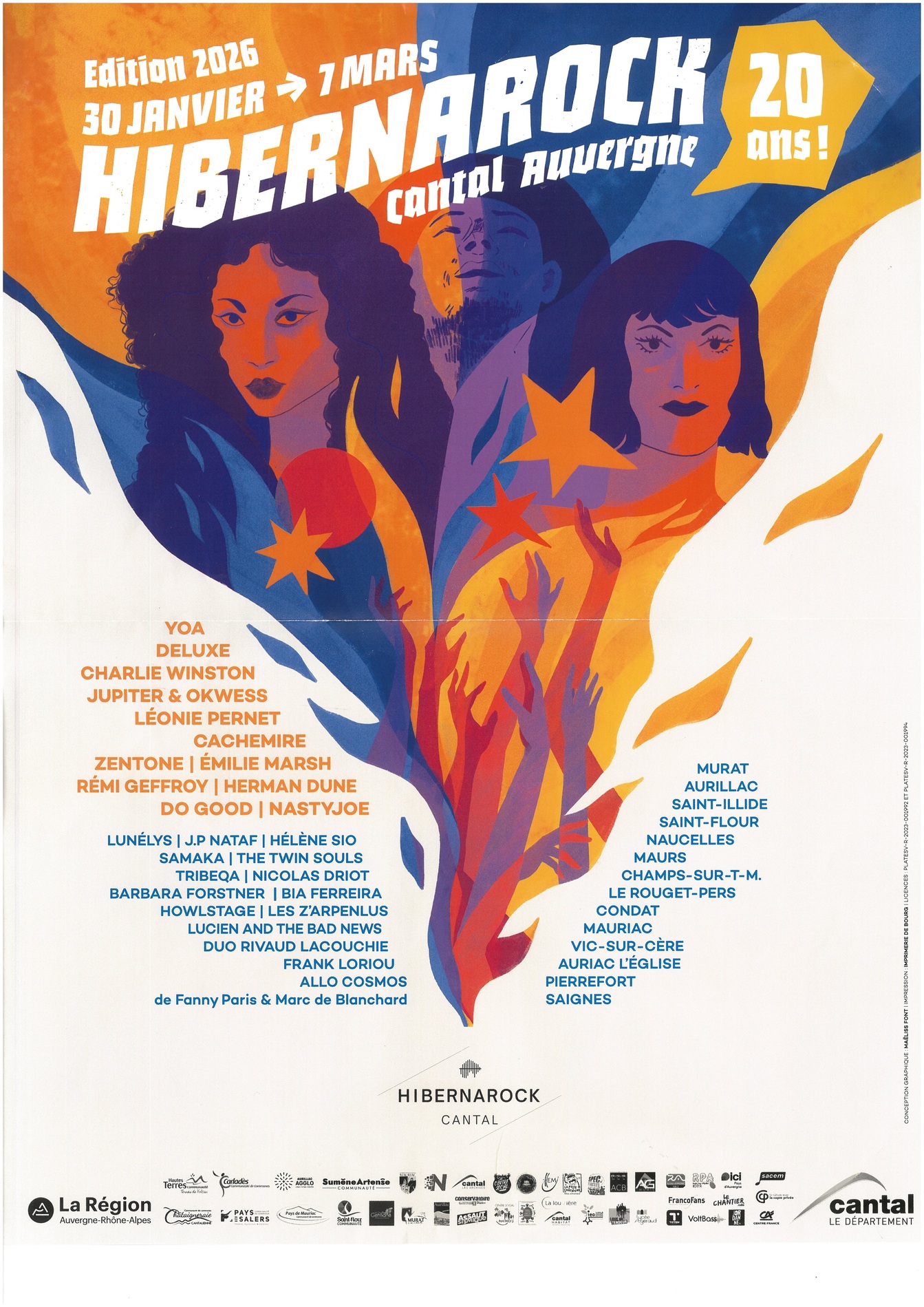 Hibernarock est un festival départemental de musiques actuelles en milieu rural porté par le Conseil départemental du Cantal. Il mêle les genres, s’aventure sans retenue sur les chemins enneigés, des plus escarpés au plus enchanteurs. Embrassant les esthétiques de tous bords, il revient tous les hivers en plein cœur des volcans d’Auvergne et au plus près de chez vous depuis près de 20 ans !