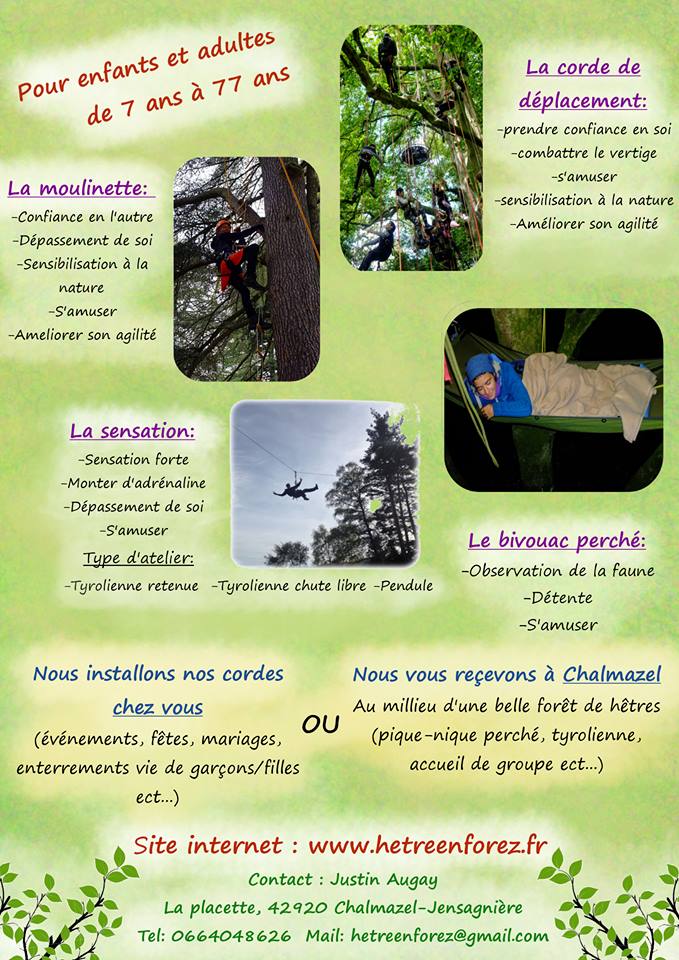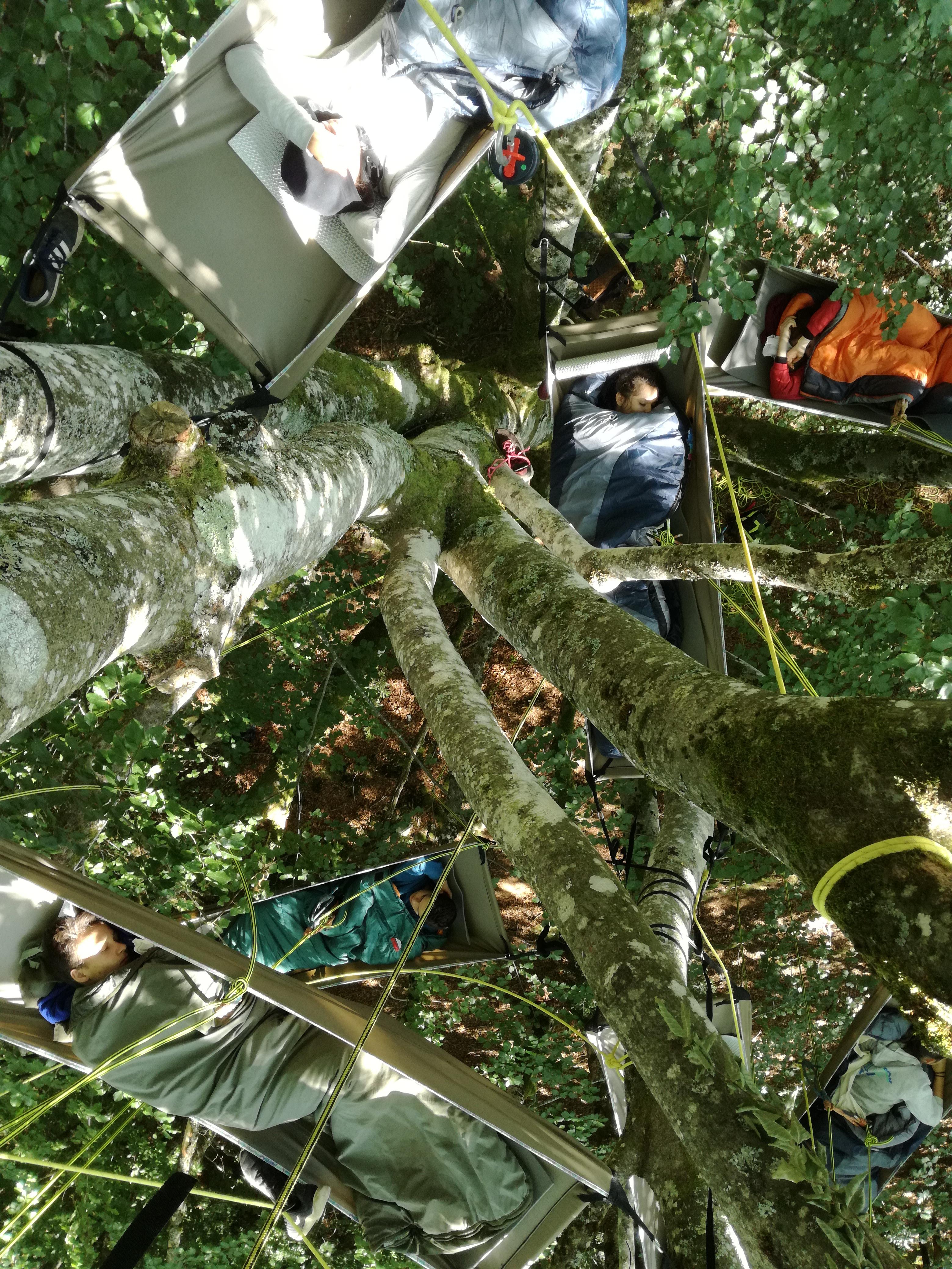 - Nuitée perchée : corde voyageuse pour venir passer la nuit dans un hamac perché dans un bel hêtre.