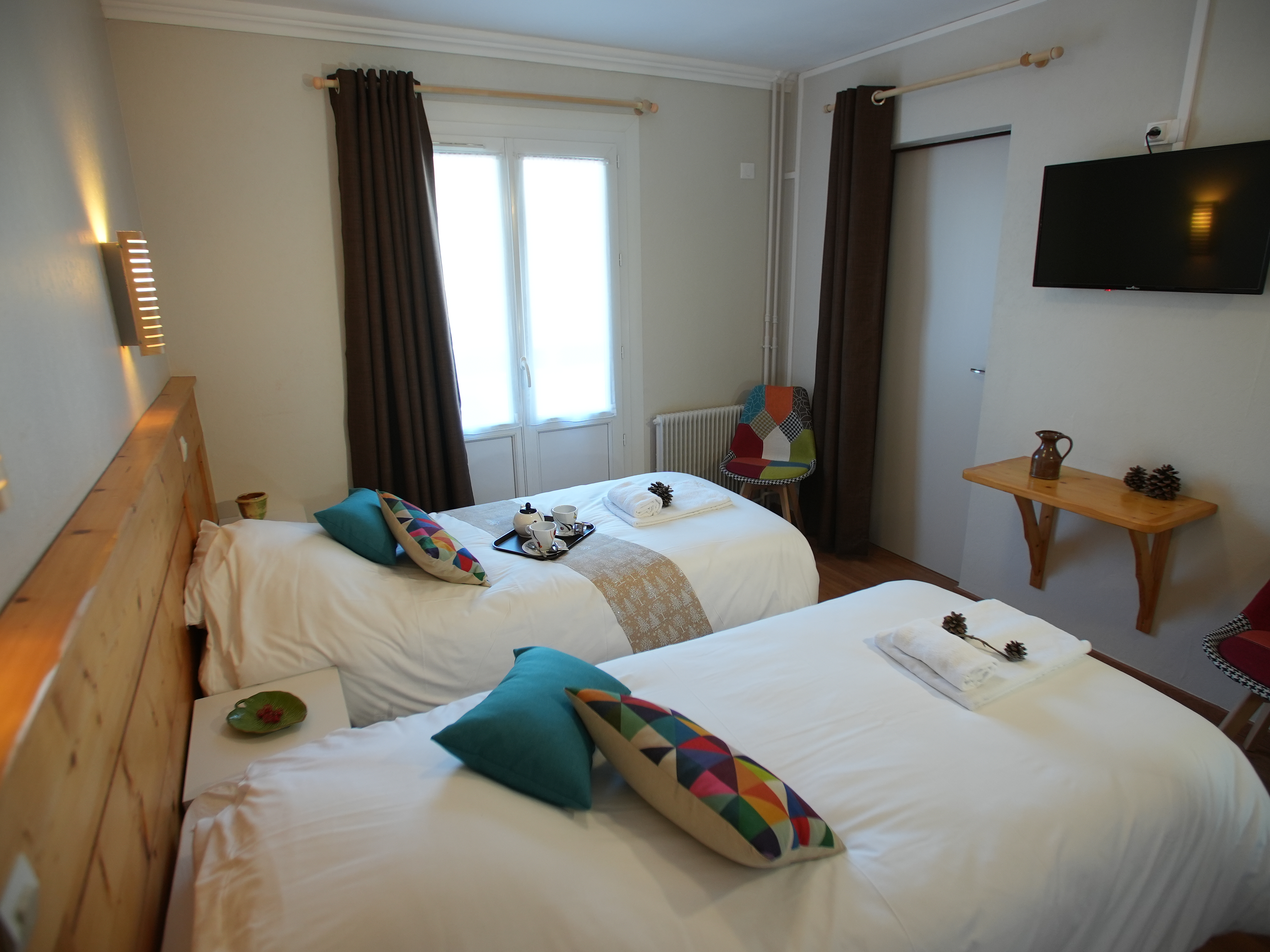 Du 09/01 au 16/03/2025 Chambre double : de 76 à 90 € Chambre single : de 91 à 105 € Demi-pension (/ pers.) : à partir de 33 € (supplément à la chambre comprenant le diner avec menu UNIQUE entrée-plat-dessert hors boisson servi entre 19h et 20h et petit déjeuner en buffet servi de 08h à 10h - 28.00 € par enfant de 3 ans à 11 ans) Petit déjeuner : 11 € (8 € pour les enfants de 3 ans à 11 ans) Animaux : 8 € Taxe de séjour : 0,90 € (par adulte). Du 17/04/2025 au 18/10/2026 Chambre double : de 76 à 99 € Chambre single : de 91 à 115 € Demi-pension (/ pers.) : 33 € (supplément à la chambre comprenant le diner avec menu UNIQUE entrée-plat-dessert hors boisson servi entre 19h et 20h et petit déjeuner en buffet servi de 08h à 10h - 28.00 € par enfant de 3 ans à 11 ans) Petit déjeuner : 11 € (8.00 € par enfant de 3 ans à 11 ans) Animaux : 8 € Taxe de séjour : 0,90 € (Par adulte). Tarif groupe à partir de 20 personnes. Taxe de séjour non incluse.