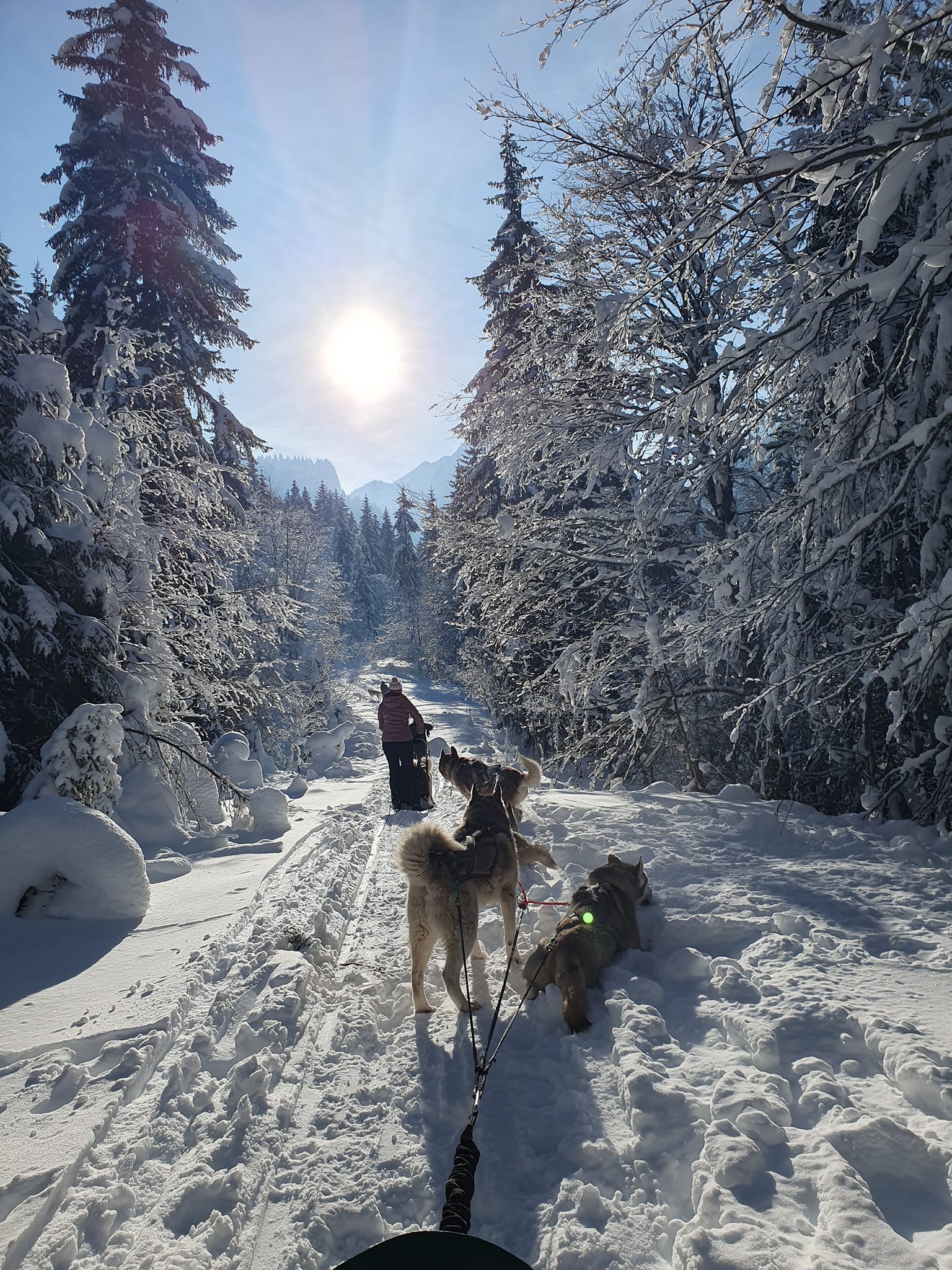 Durant la saison hivernale, vivez l'aventure en Haute-Savoie, les chiens (3 à 5) seront vos compagnons et équipiers pour une randonnée à travers les sapins enneigés. Fabrice et Cathy vous initient aux techniques de conduite d'attelage.