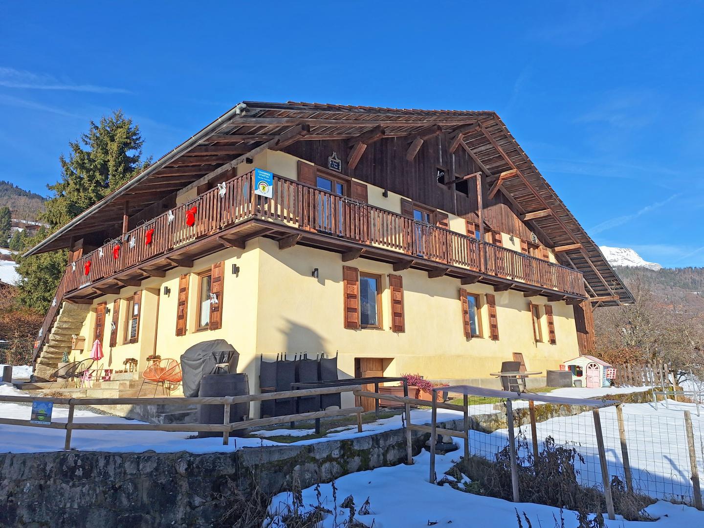 Face au Mont-Blanc ! Panorama d'exception sur le massif du Mont-Blanc pour ces 2 chambres d'hôtes aménagées à deux pas du centre village de Cordon.