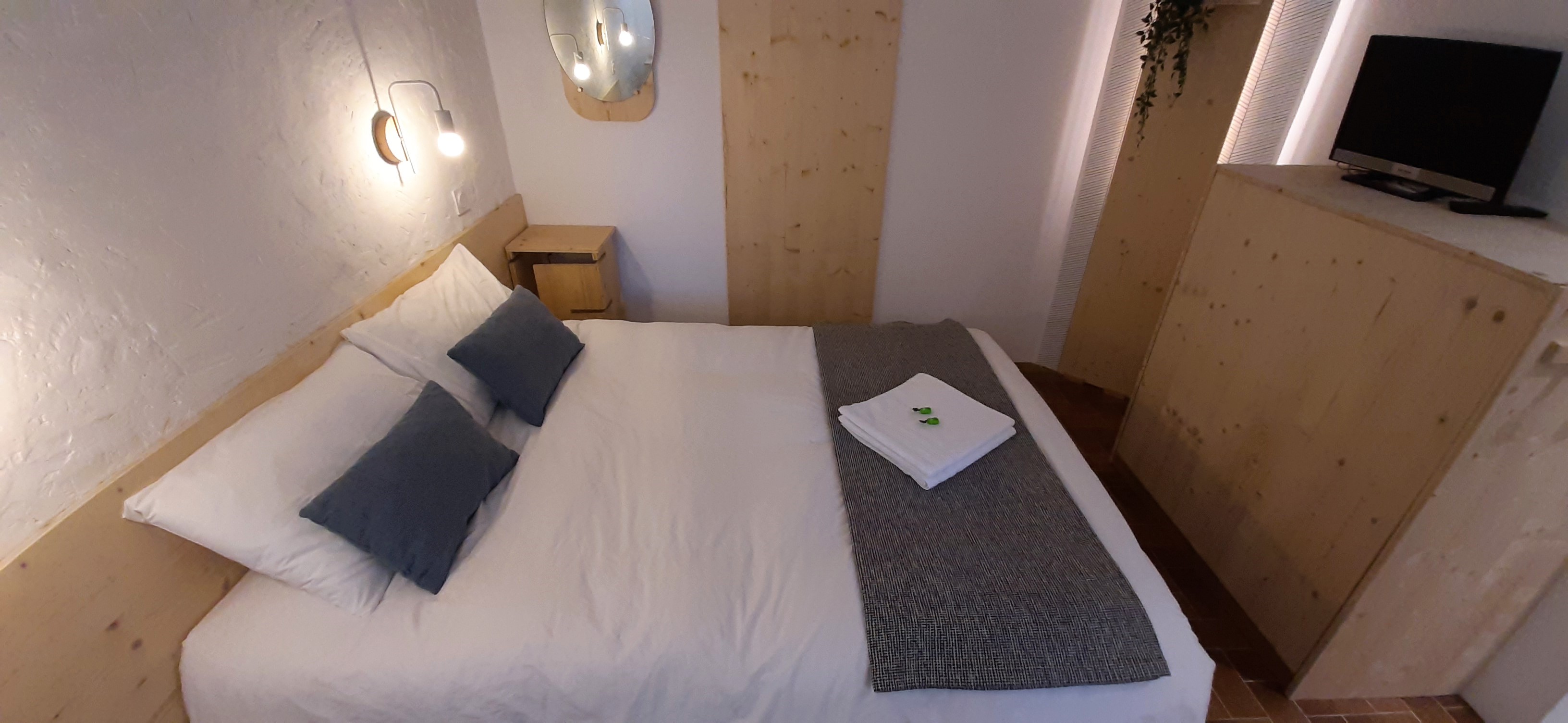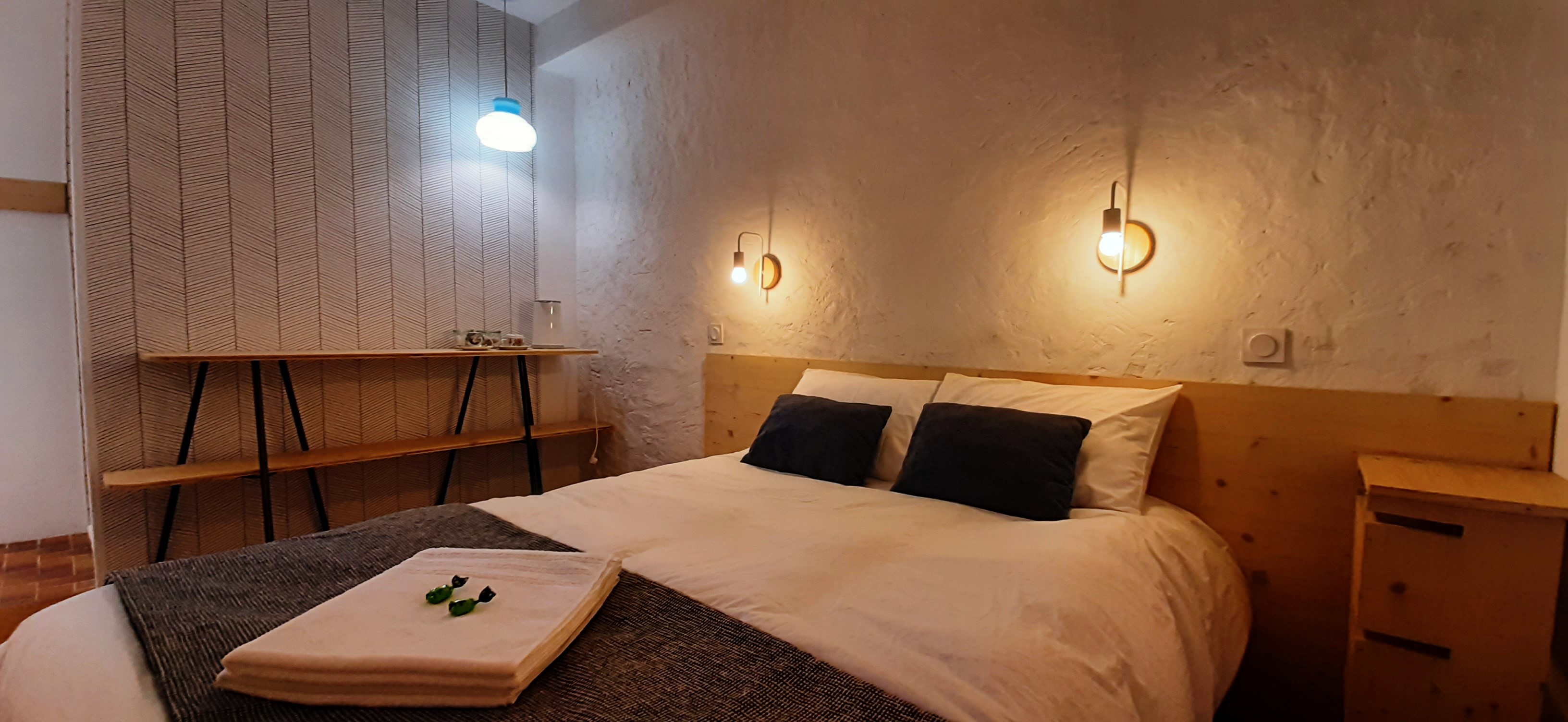 - Chambre 2 pers : 1 lit 2 pers. en 140x190 cm. Sanitaires privatifs (douche grand format, vasque sur plan et WC).