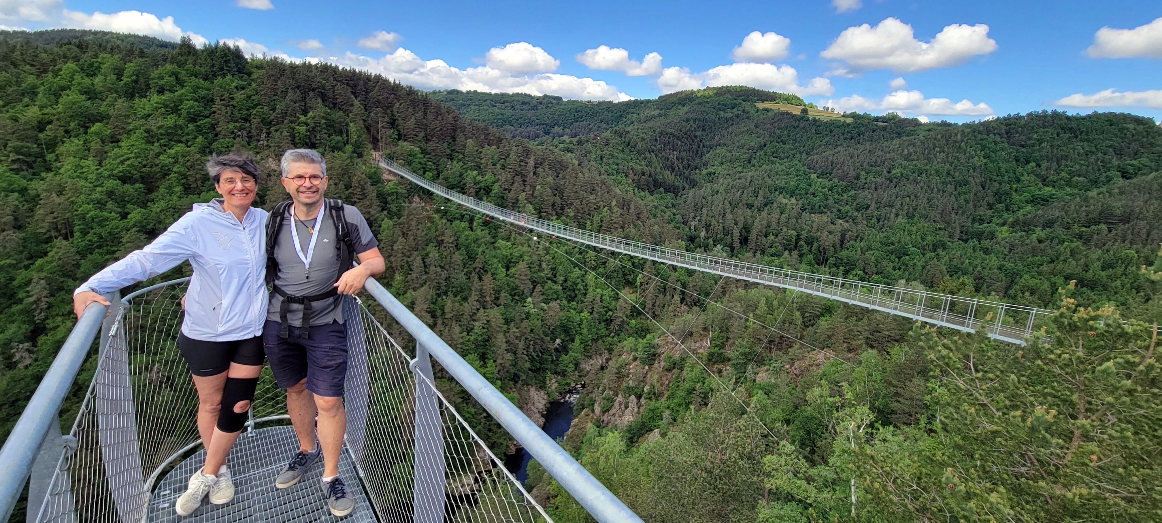 La magnifique passerelle himalayenne la plus longue de France. C’est la dernière attraction accessible en 30 min à vélo par la voie verte, ou en voiture.