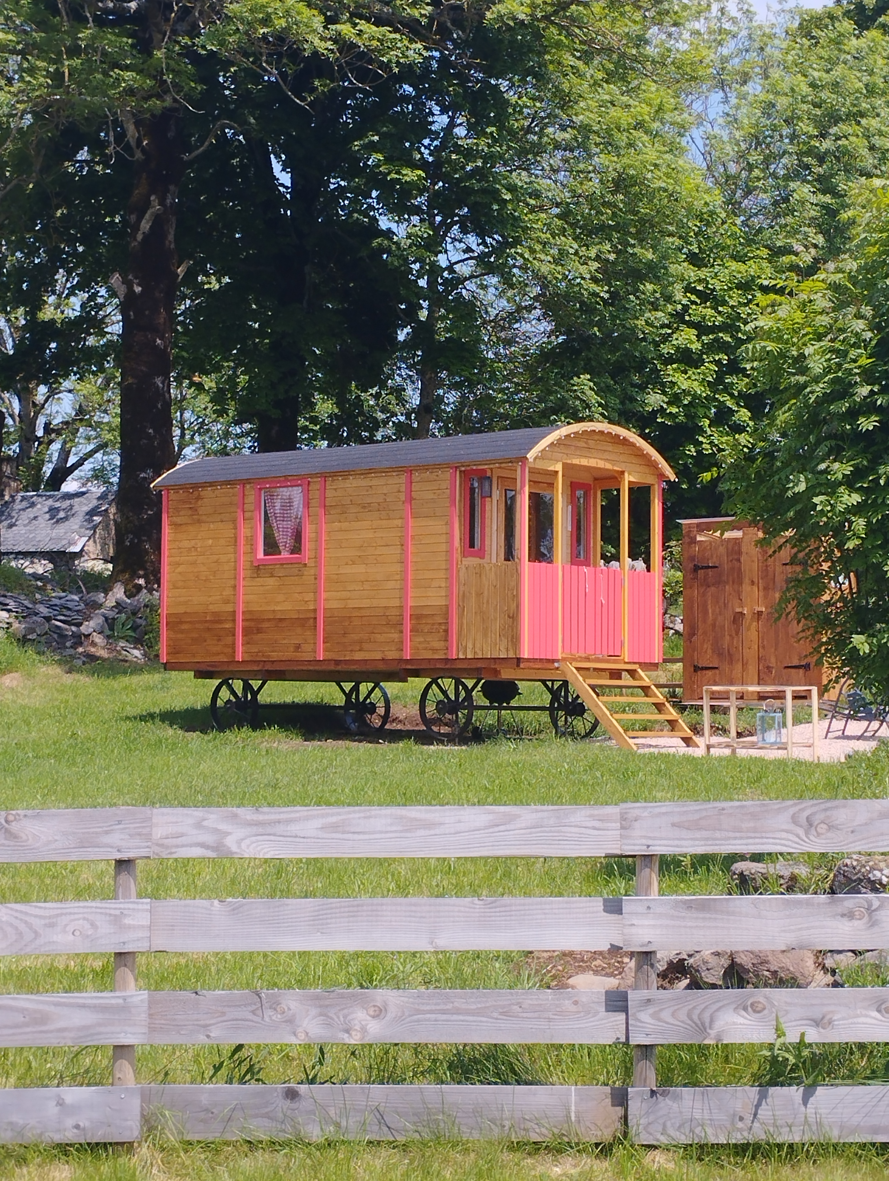 Dans un écrin de verdure et au calme, la roulotte Romantique vous offre une expérience minimaliste, éco-nature, avec une jolie vue sur les monts du Cantal. A 1150 mètres d'altitude, exposée Sud-est, idéal pour découvrir les volcans.