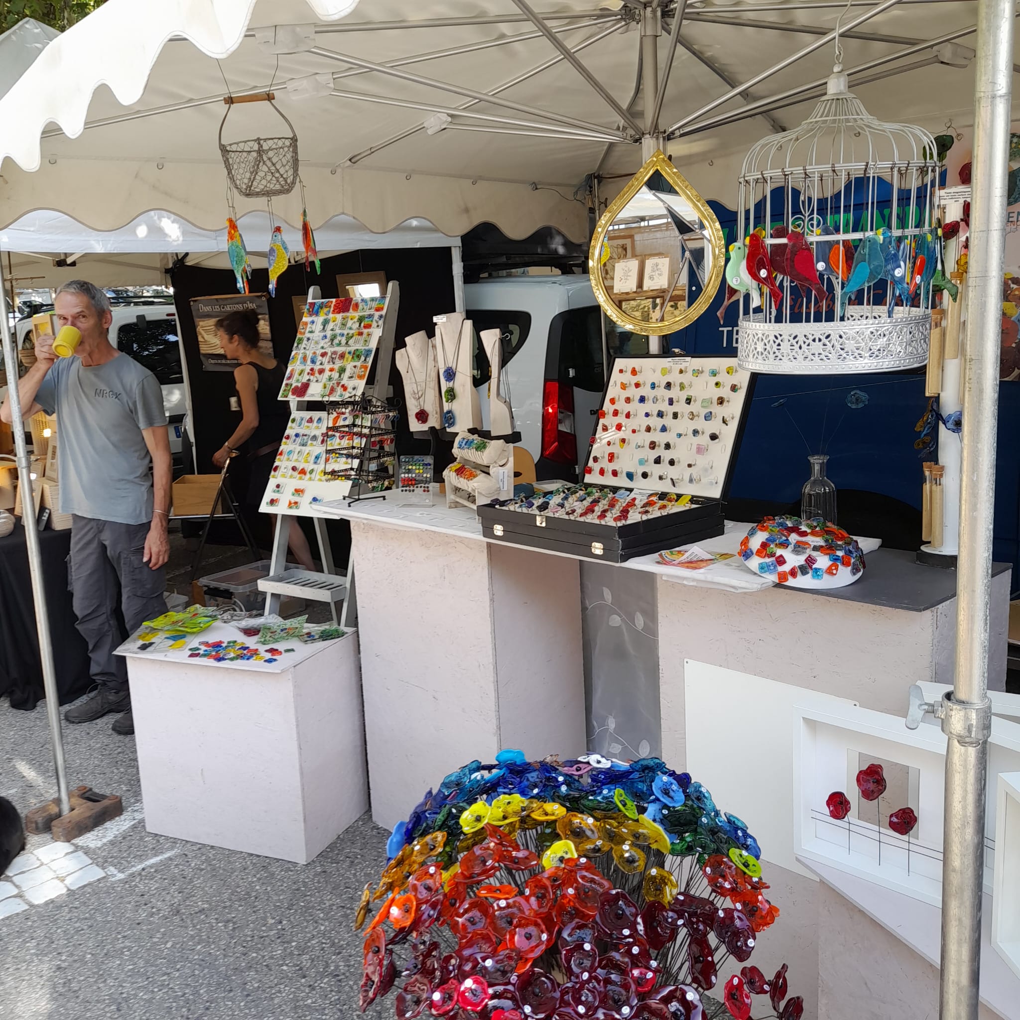 Elisabeth Cuffel, artisane vitrailliste depuis plus de 10 ans, crée des vitraux traditionnels avec du plomb soudé à l'étain ainsi que du vitrail fusing (superposition de différentes pièces de verre puis fusion à 800°) dans son atelier à Tence. L'atelier est ouvert toute l'année, 7 chemin de blanc à Tence. Vous la retrouverez également à la Halle Fermière au Mazet St Voy, dans la nouvelle boutique du Chambon sur Lignon, "Après l'atelier", 15 route de Saint Agrève ainsi que sur les marchés artisanaux d'été de Loz'Art Auvergne Partez à la découverte de la Route des Savoir-Faire de Haute-Loire !