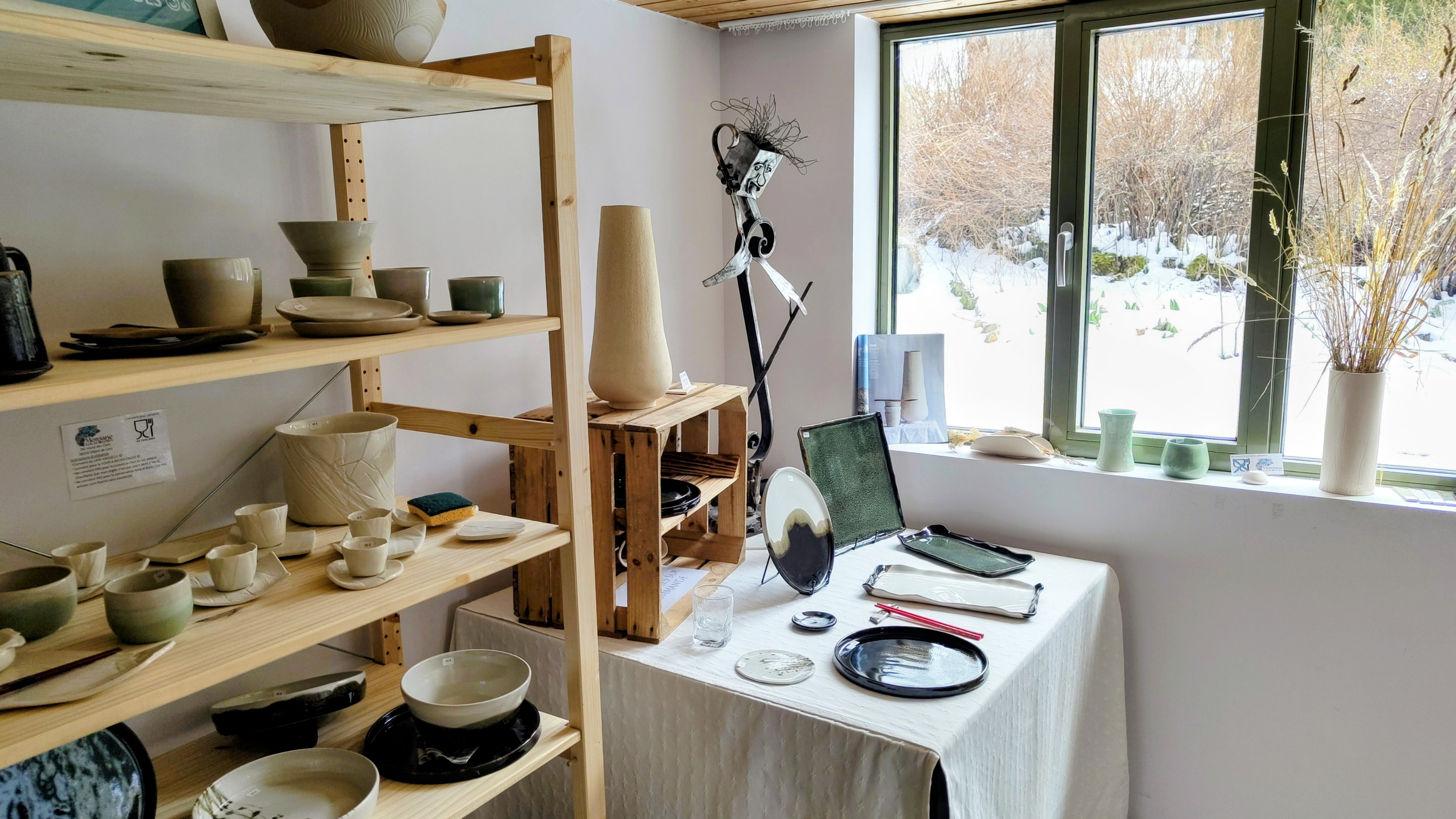 Arts de la table en grès : pièces contemporaines conçues et façonnées à la main.