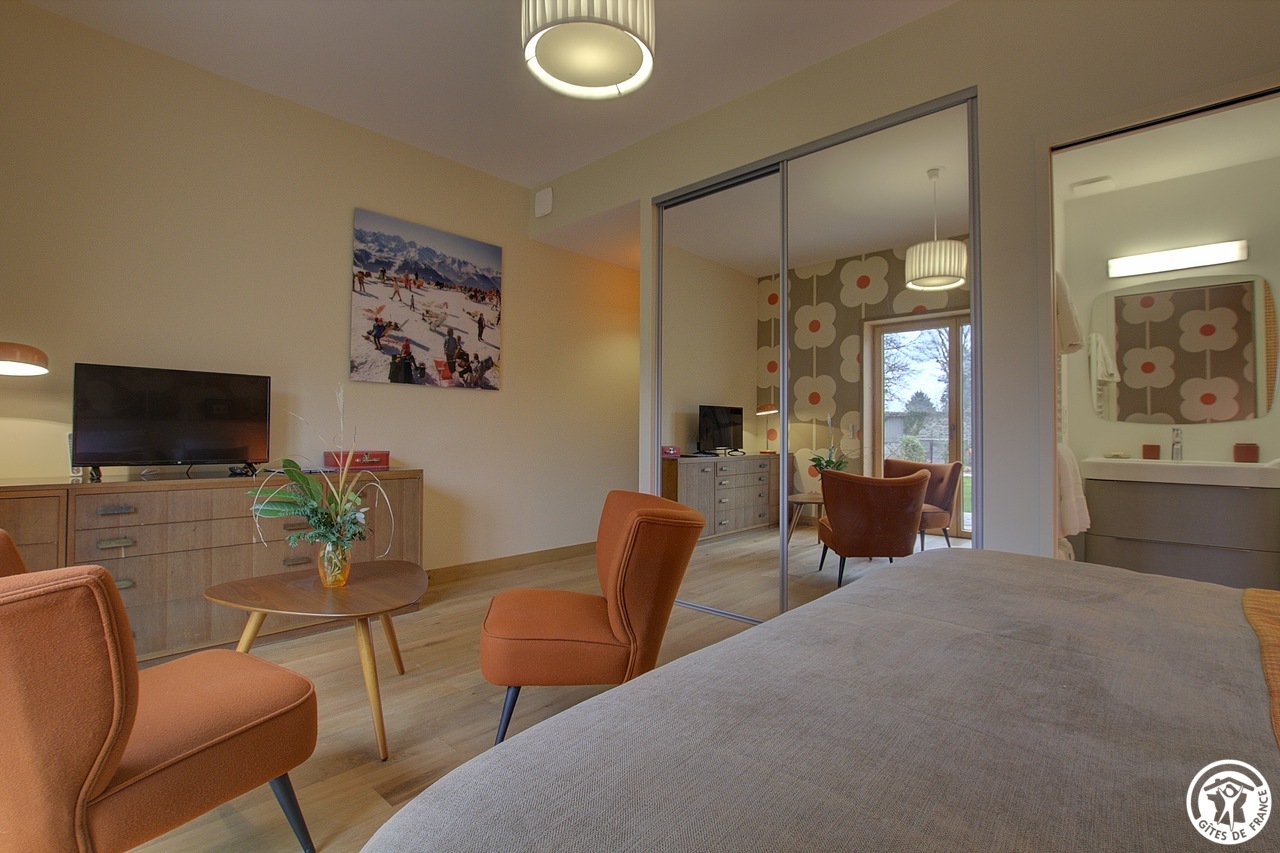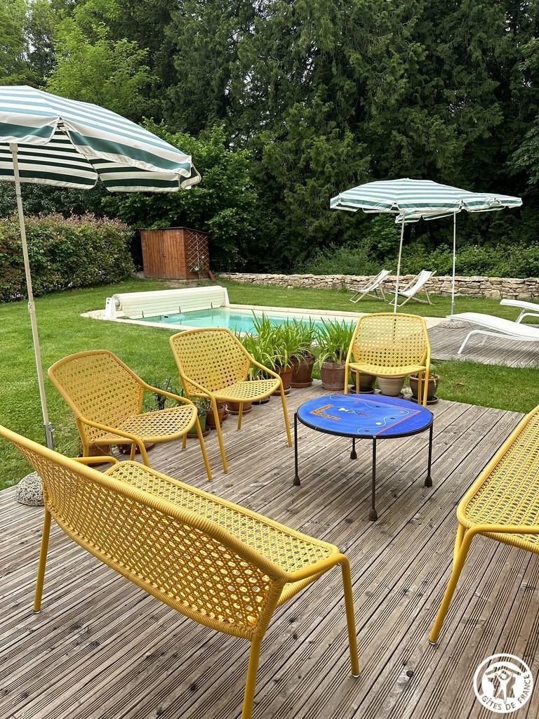 Hébergement d'exception de charme avec couloir de nage intérieur et piscine extérieure au calme au coeur d'un village du Bugey. Grand Parc arboré.