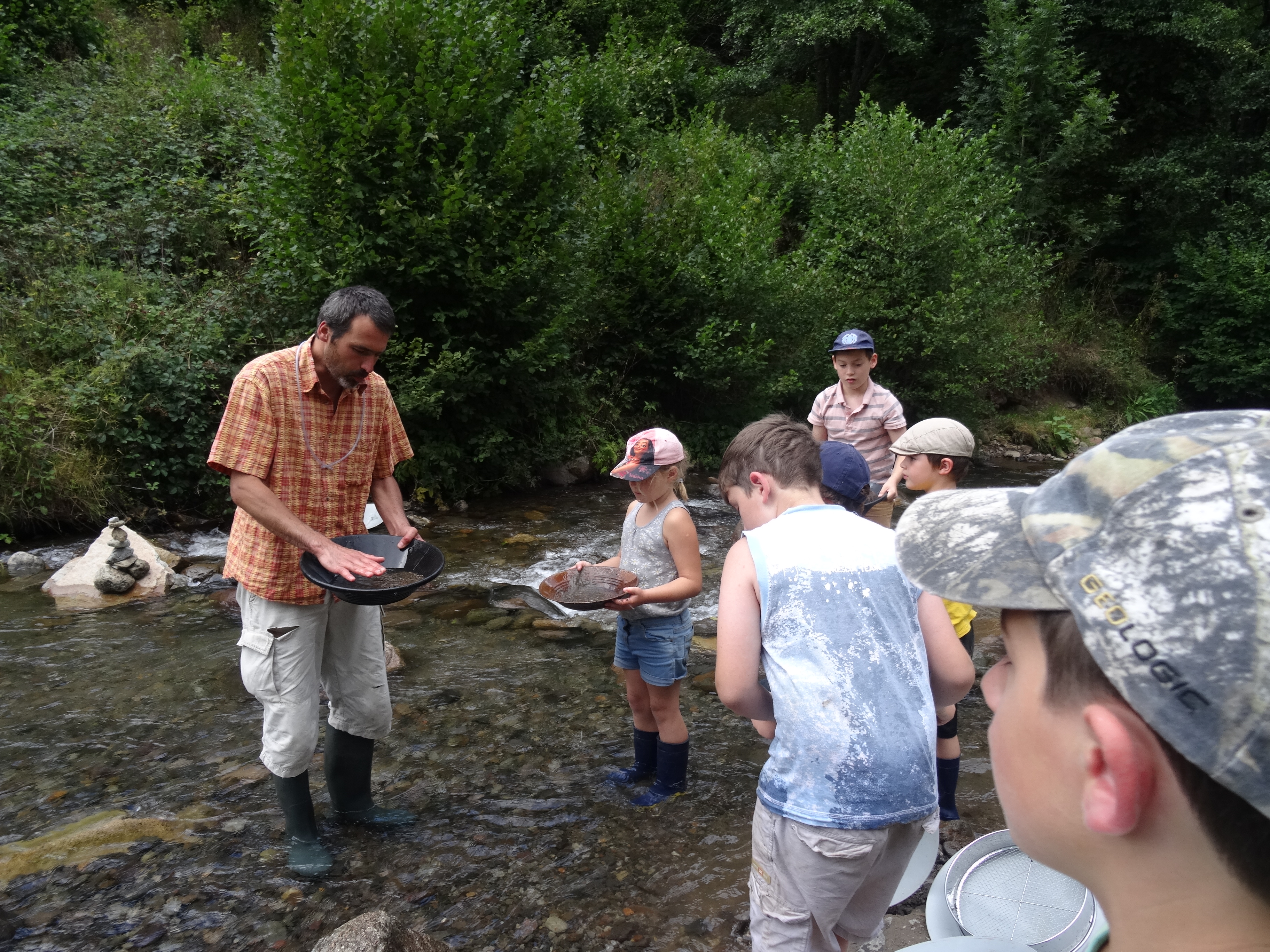 Au cours d'une initiation à la bâtée, rendue célèbre par les chercheurs d'or, recherchez les minéraux cachés dans le sable. Cette prospection vous permettra de découvrir de manière privilégiée le fonctionnement d'un ruisseau et les minéraux présents dans