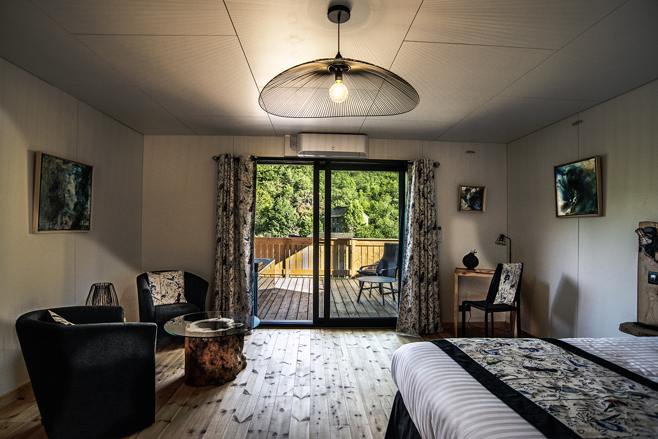 Vos chambres sur pilotis vous permettront de passer un séjour enchanteur et magique. Tout le confort et le luxe dans une chambre de 40 m² et sa terrasse de 20 m² sur laquelle vous trouverez votre balnéo privatif. Minibar, machine à café et thé….