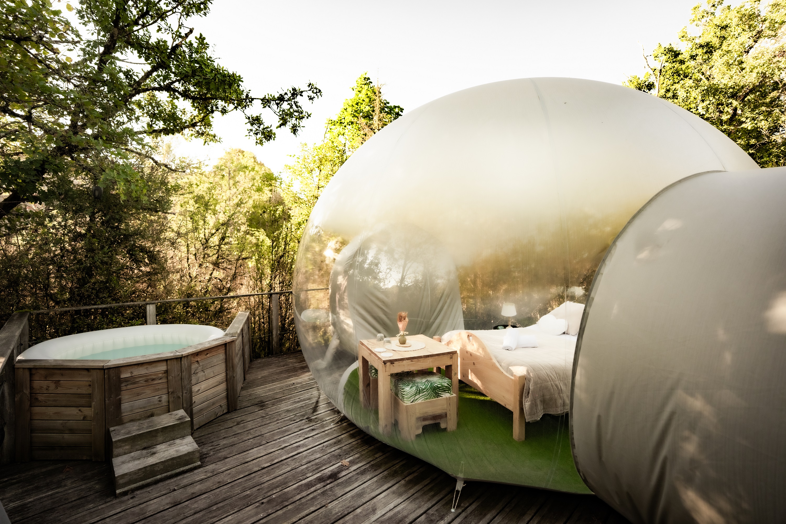 Immergées dans la végétation, nos bulles transparentes vous feront passer une nuit inoubliable à la belle étoile dans le confort intégrale d'une chambre d'hôtel.