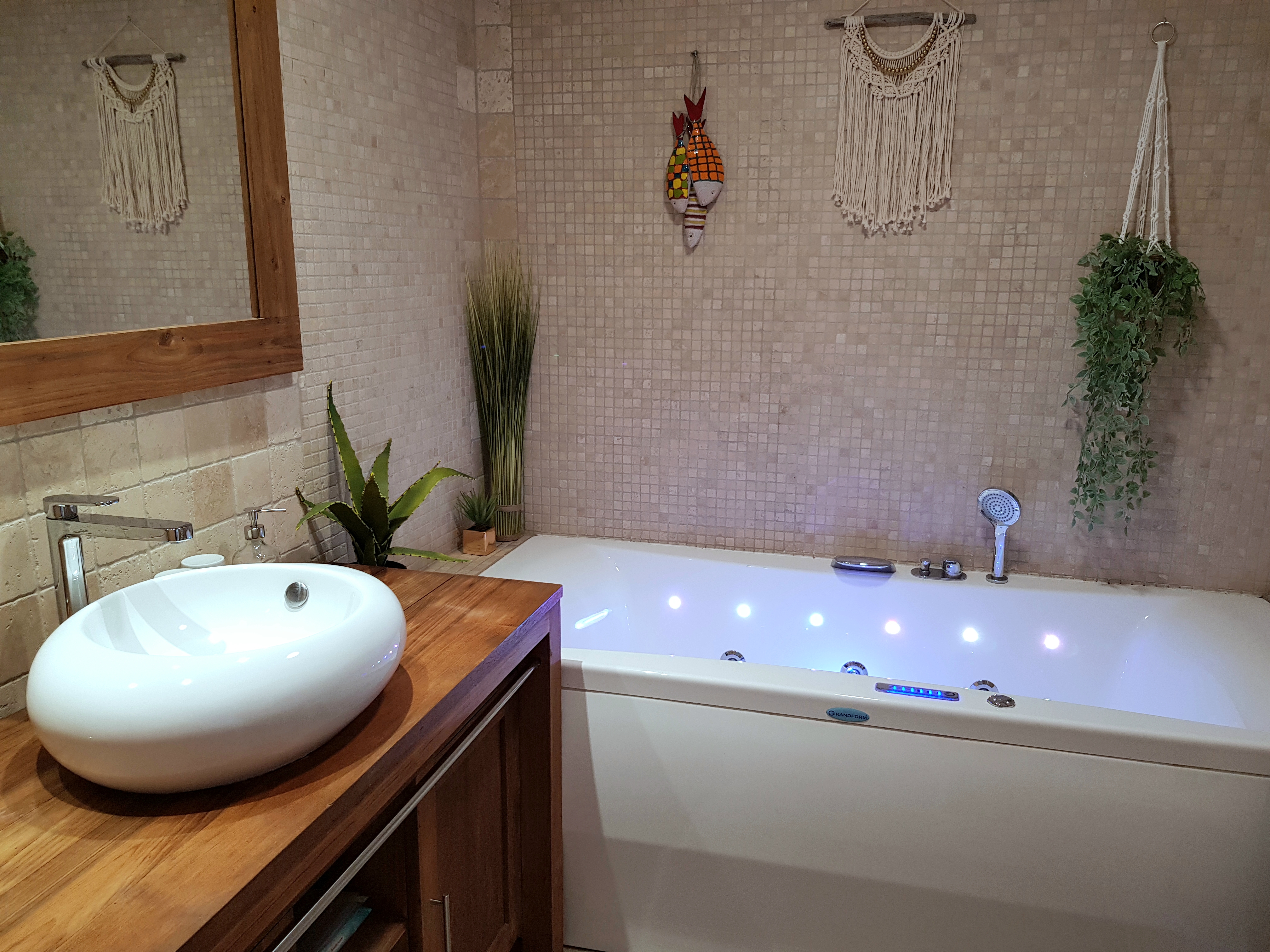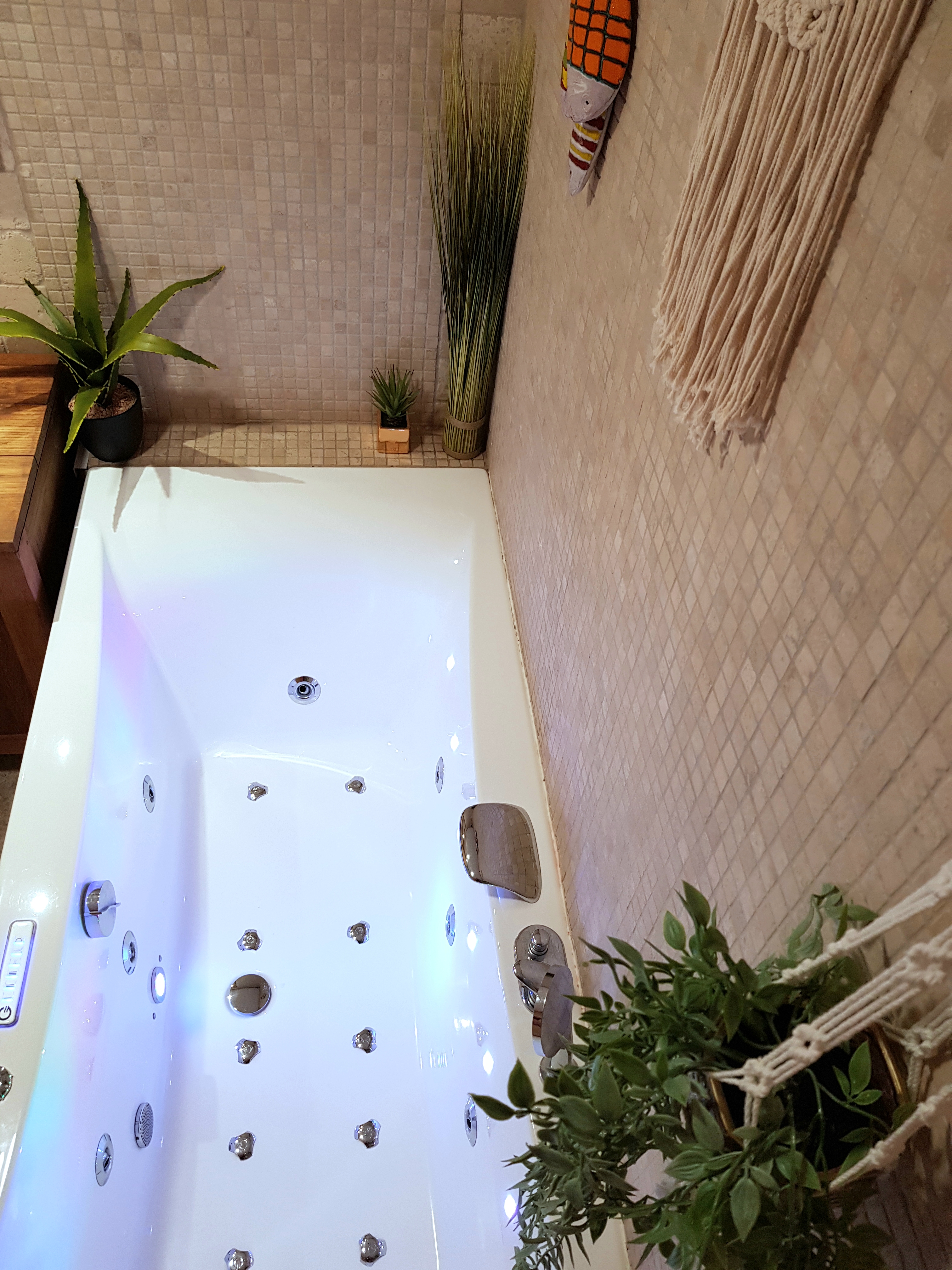 Ce véritable cocon de relaxation est en immersion dans la nature. Il se situe pourtant au cœur du village médiéval.