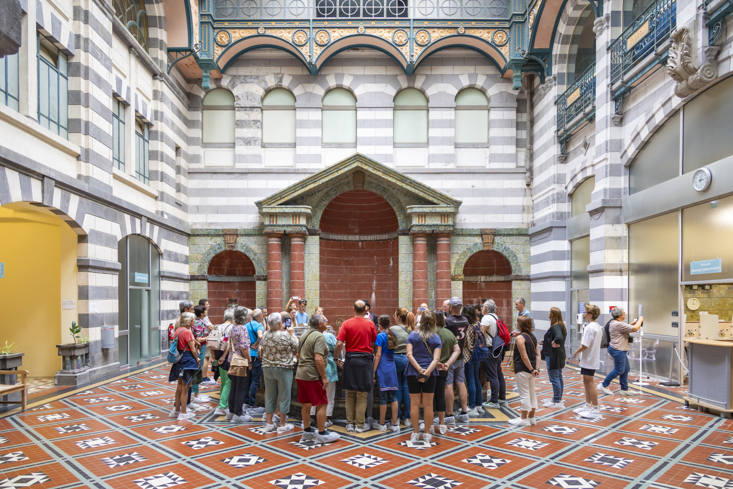 Lors de notre visite aux Thermes du Mont-Dore, j'ai été littéralement émerveillée par l'architecture et la décoration intérieure du bâtiment. Quel contraste saisissant ! Je n'aurais jamais pu imaginer qu'un tel trésor se cachait derrière la façade austère en pierre volcanique. Une fois franchie la porte, c'est une explosion de couleurs et d'élégance qui nous attend : les mosaïques aux motifs géométriques, les colonnes ornées, les arches majestueuses... tout témoigne du faste de l'époque thermale. Notre guide en costume d'époque a ajouté une touche d'authenticité et de charme inoubliable à cette visite, nous replongeant dans l'atmosphère du XIXe siècle, quand le Mont-Dore était une destination prisée de la haute société. Une expérience à ne pas manquer pour quiconque visite l'Auvergne !