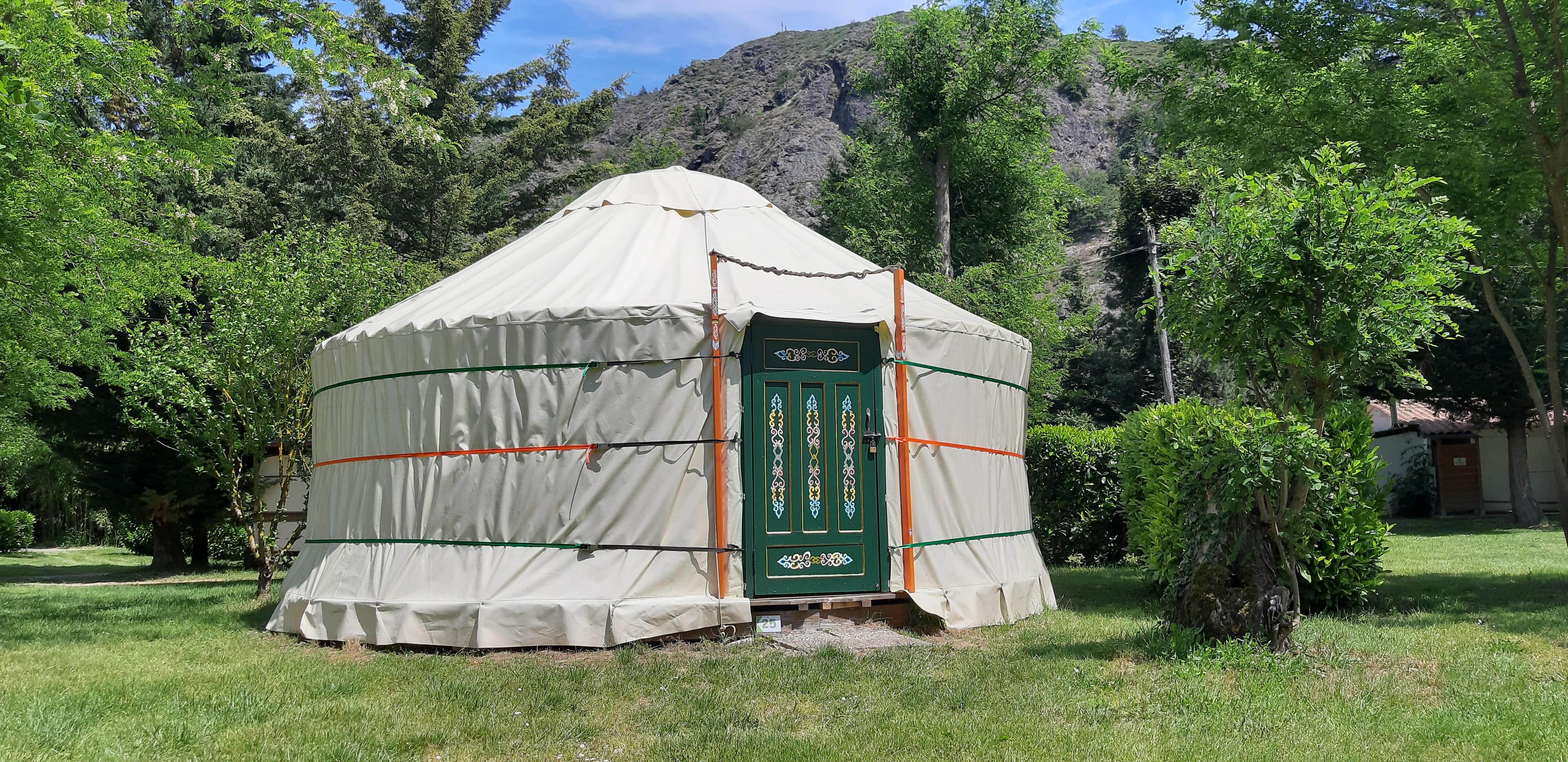 Le Camping Le Viaduc propose entre autres hébergements insolites 7 yourtes mongoles, avec ou sans salle de bain, d'une capacité de 2 à 6 personnes chacune. Toutes sont décorées avec du mobilier traditionnel mongole pour une immersion et un dépaysement immédiat. Cet habitat traditionnel s’inscrit parfaitement dans le paysage apaisant et authentique de l'Ardèche Verte, au bord de la rivière. Pour une escapade en amoureux ou des retrouvailles en famille, la yourte est le cocon idéal pour votre séjour détente en Ardèche !