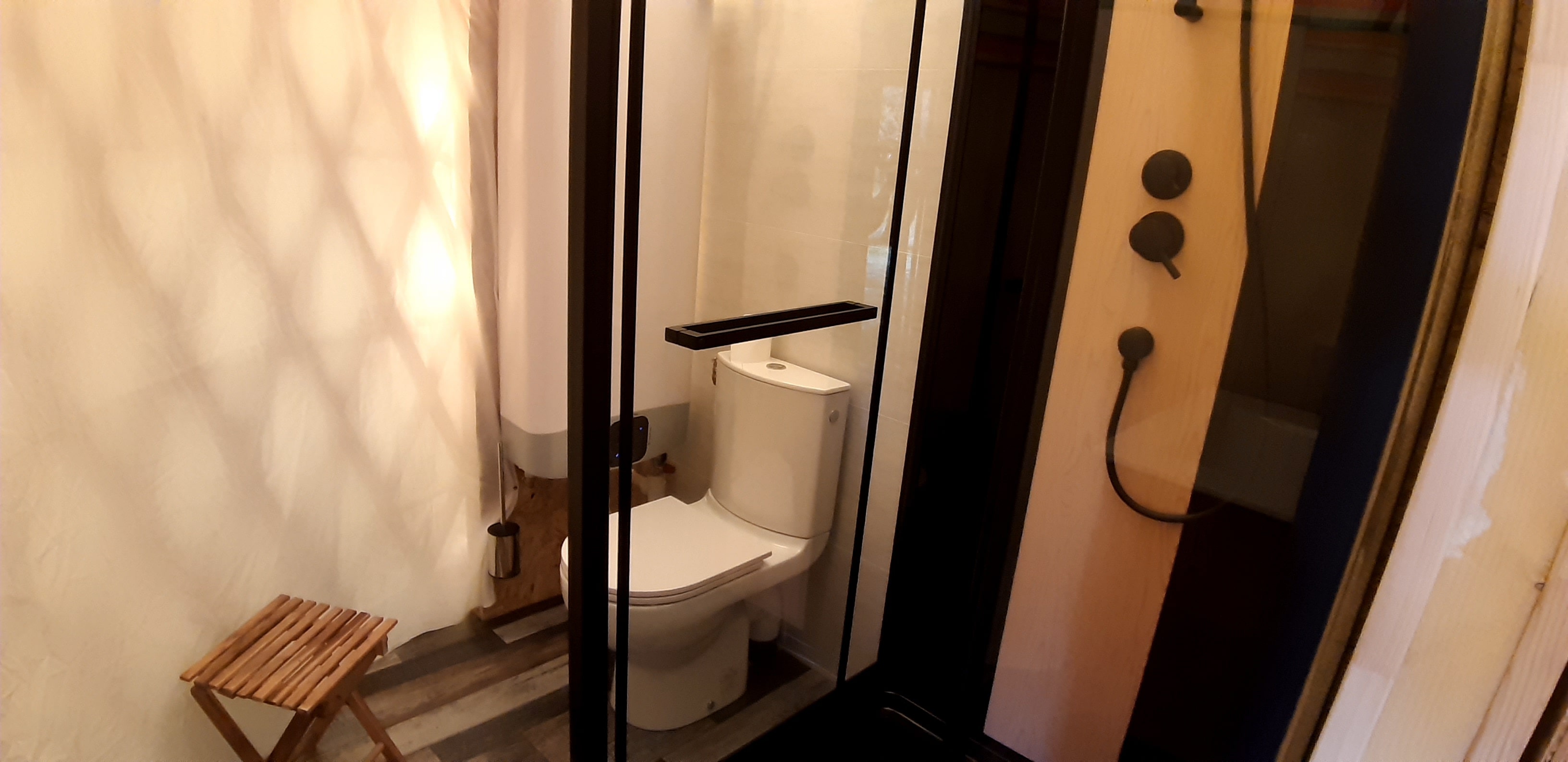 Venez tester aussi le Dôme Wigwam, une bulle ronde en toile avec ossature bois, conçue pour 4 personnes, avec salle de bain.