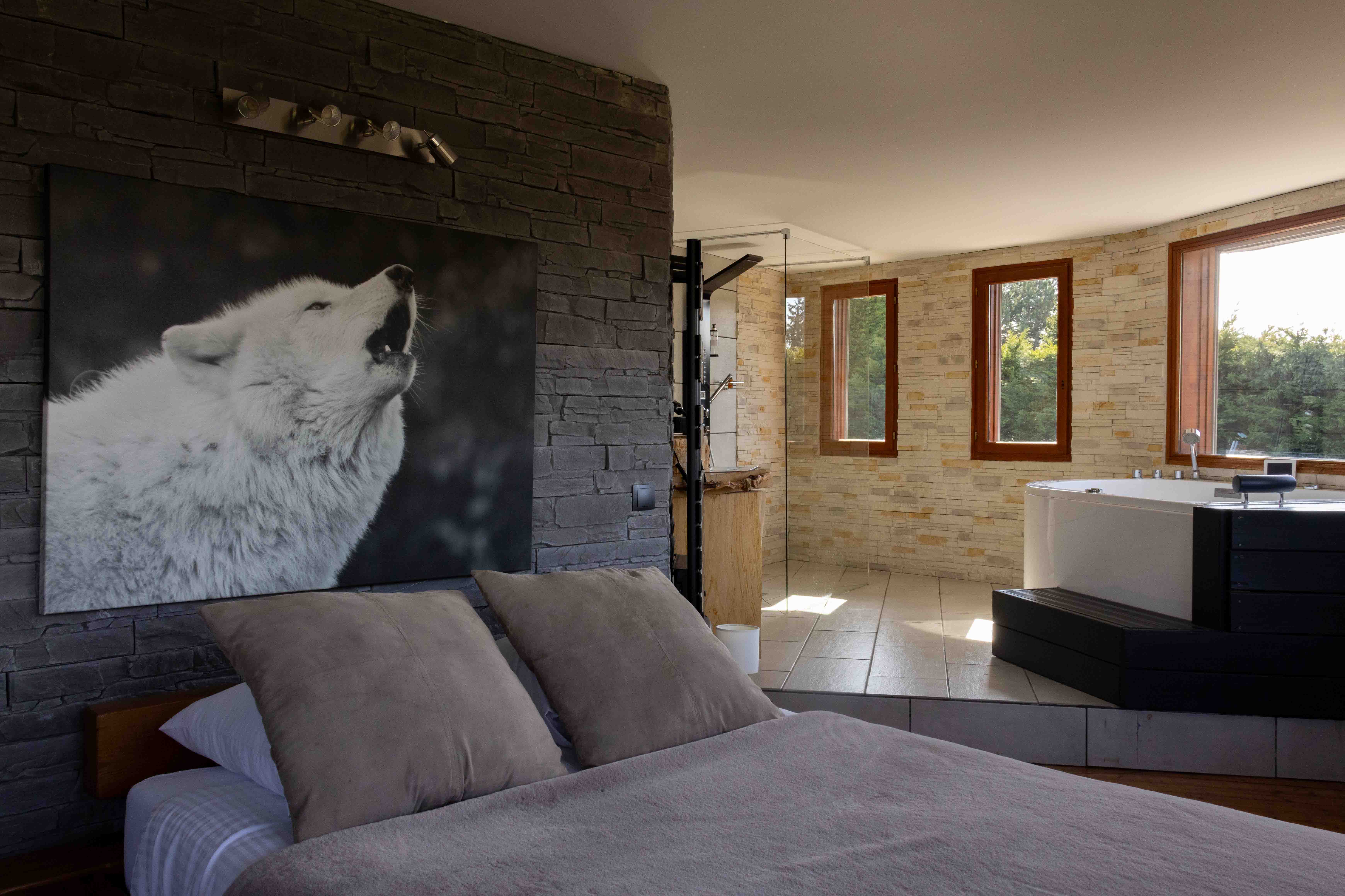Au Domaine des Fauves, le lodge Yellowstone, niché au cœur de l’enclos des loups, vous promet une expérience rare, immersive… et totalement inoubliable.