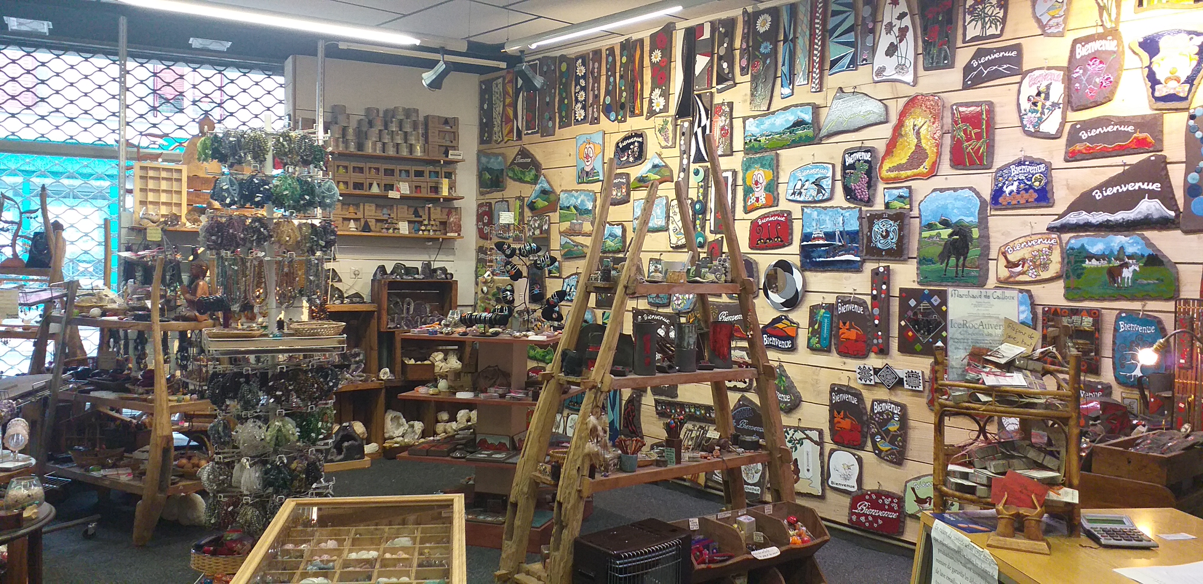 Marchand de cailloux est un magasin atypique qui propose de l'artisanat local grâce à notre production de lave émaillée. Vous trouverez également de la minéralogie d'Auvergne et du monde entier, ainsi qu'un large choix en lithothérapie, accompagnés de conseils avisés. Large choix d'artisanat du monde.