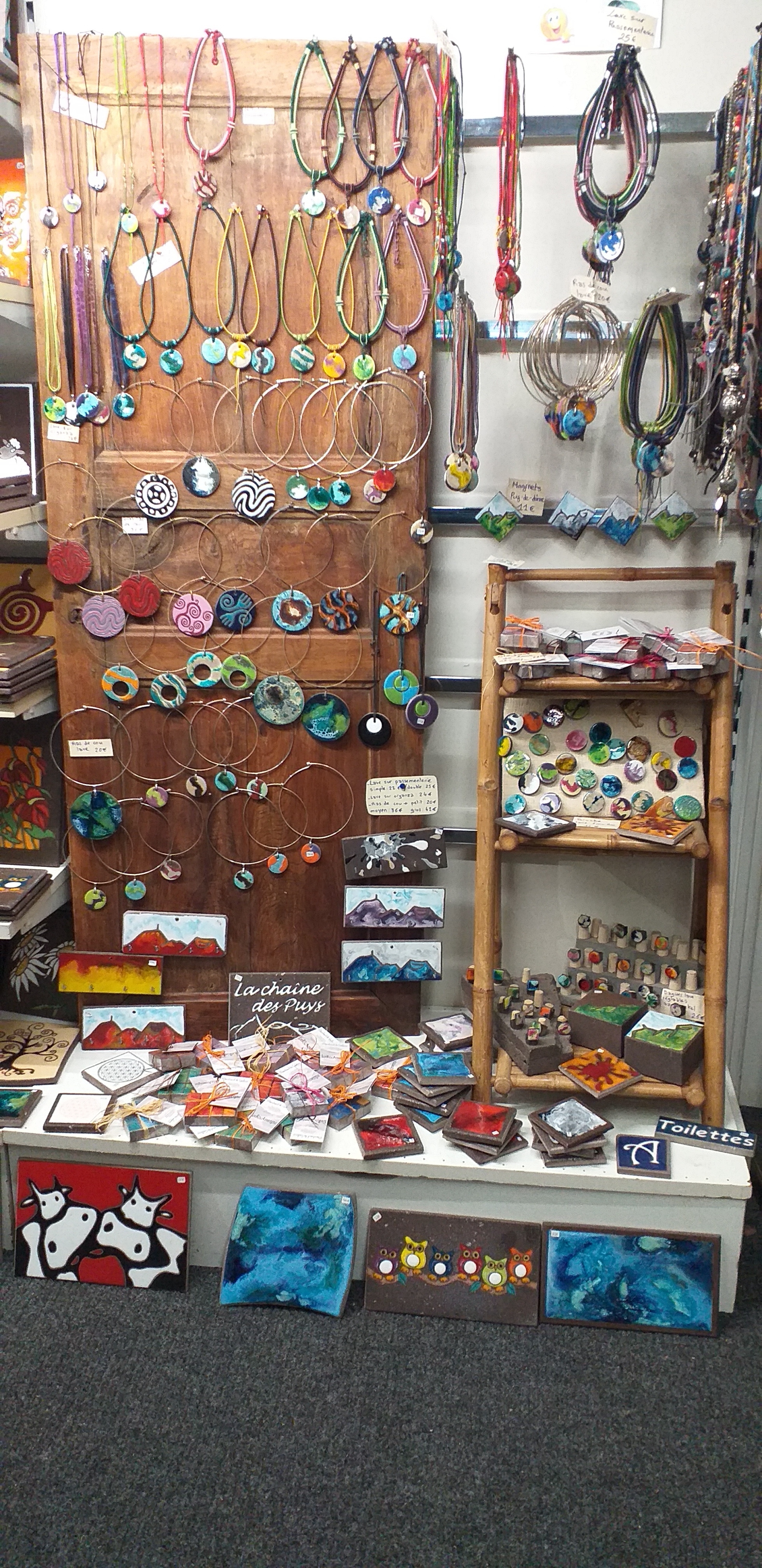 Artisanat d'art. Karine vous accueille et réalise vos commandes en lave émaillée. Elle saura aussi vous conseiller dans le choix de vos pierres et cristaux. Émaux sur lave, bijoux lave, argent et fantaisie, minéraux, lithothérapie et produits dérivés.