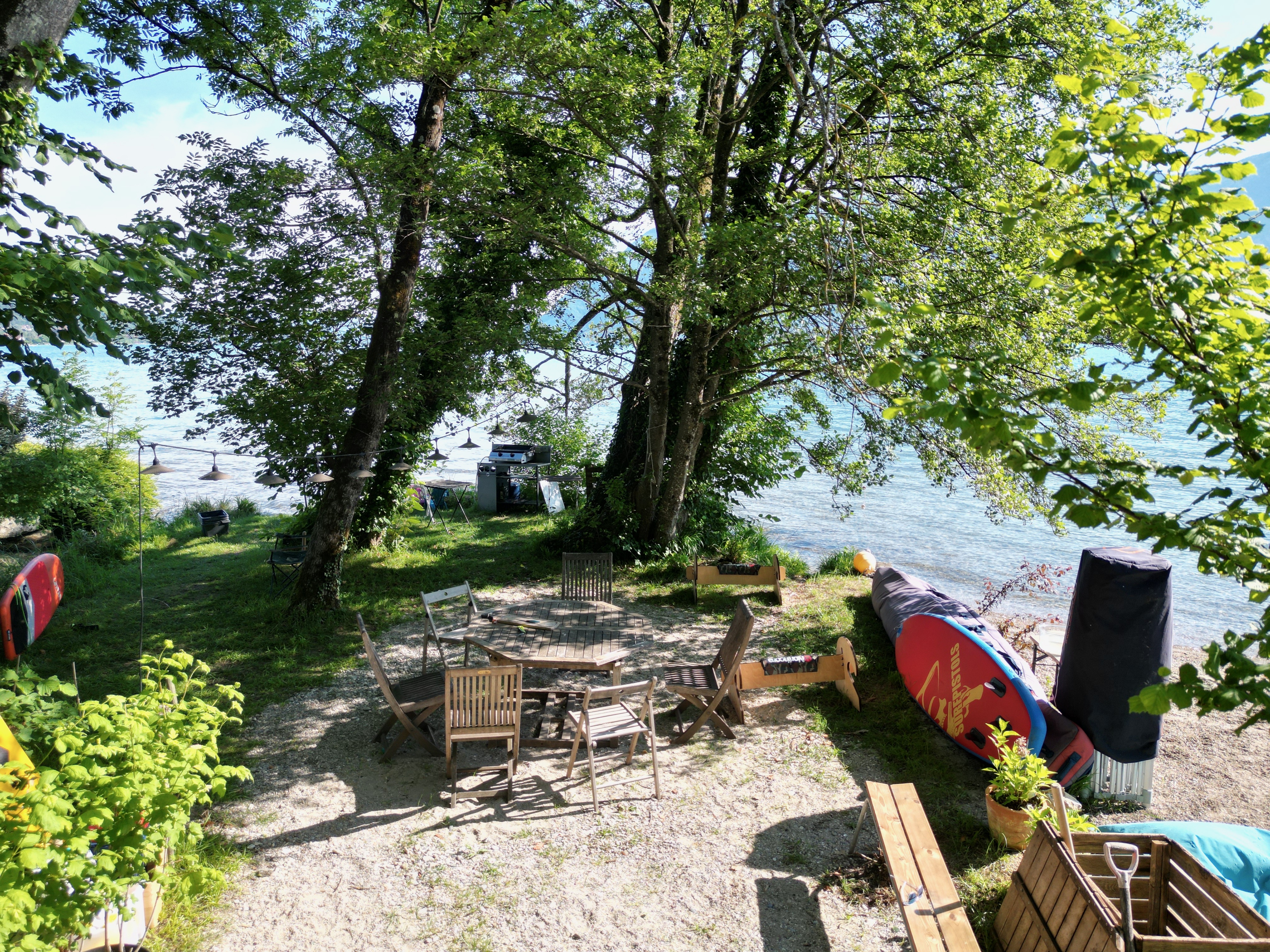 Le NCY SUP est localisé à l'embouchure d'un joli ruisseau descendant du Semnoz, dans un petit coin de paradis particulièrement paisible, à proximité de la zone protégée des roselières de Saint-Jorioz. C'est l'endroit rêvé pour découvrir le paddle.